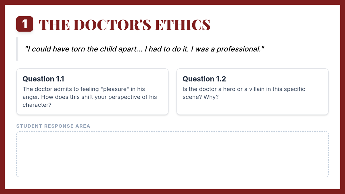 This lesson introduces students to Act 1 of The Crucible, focusing on the atmosphere of fear in Salem and the complex motivations of the central characters. Students will analyze character interactions and the spark of the witch hunt hysteria.