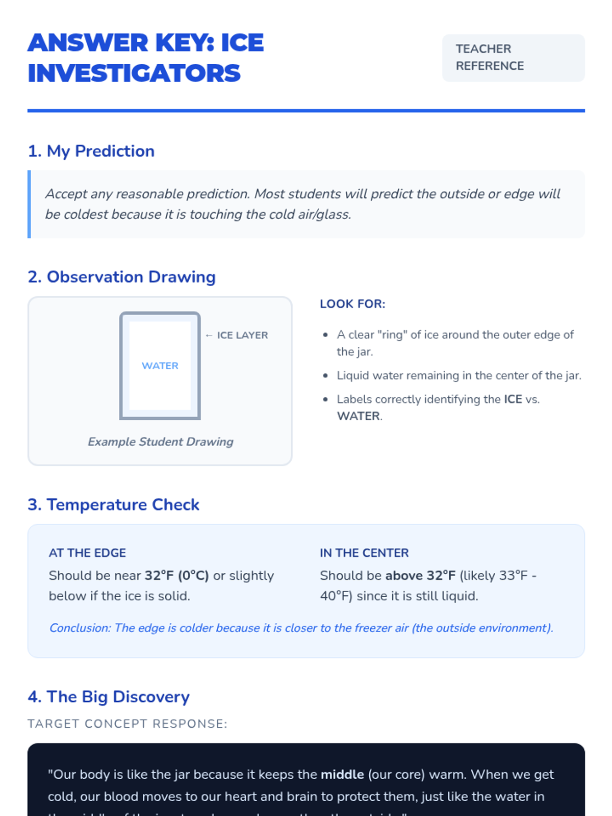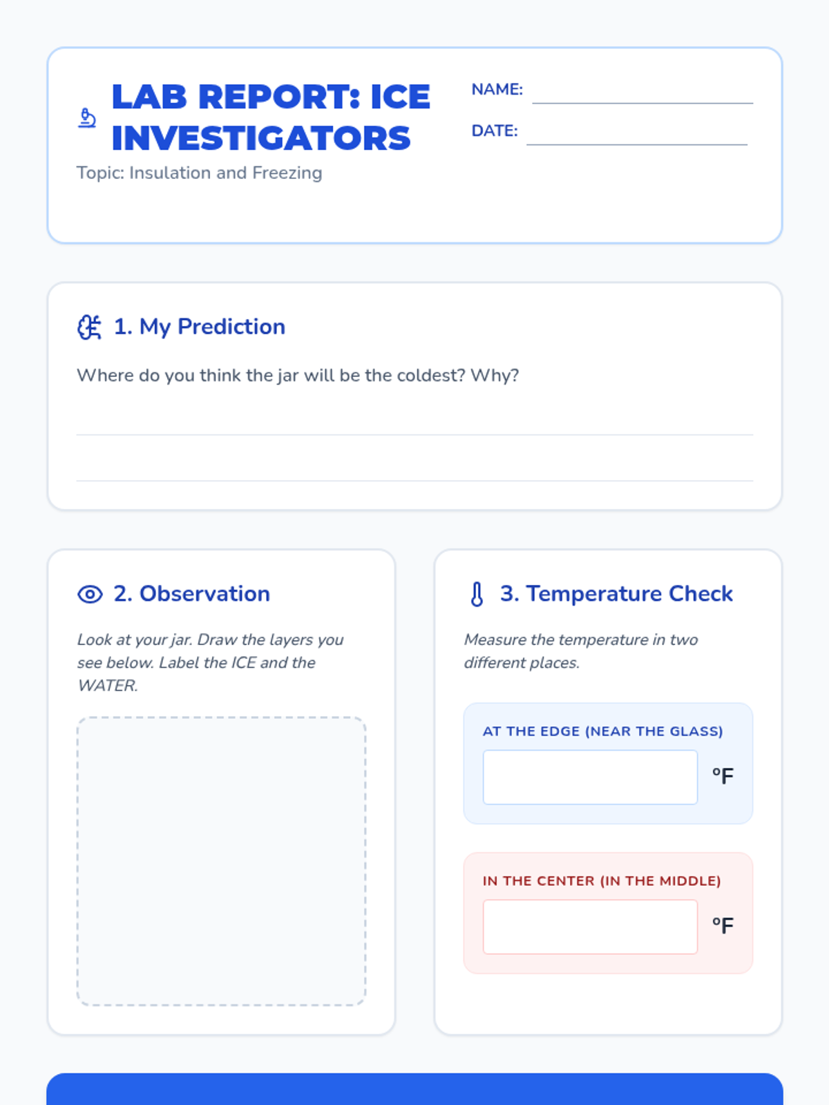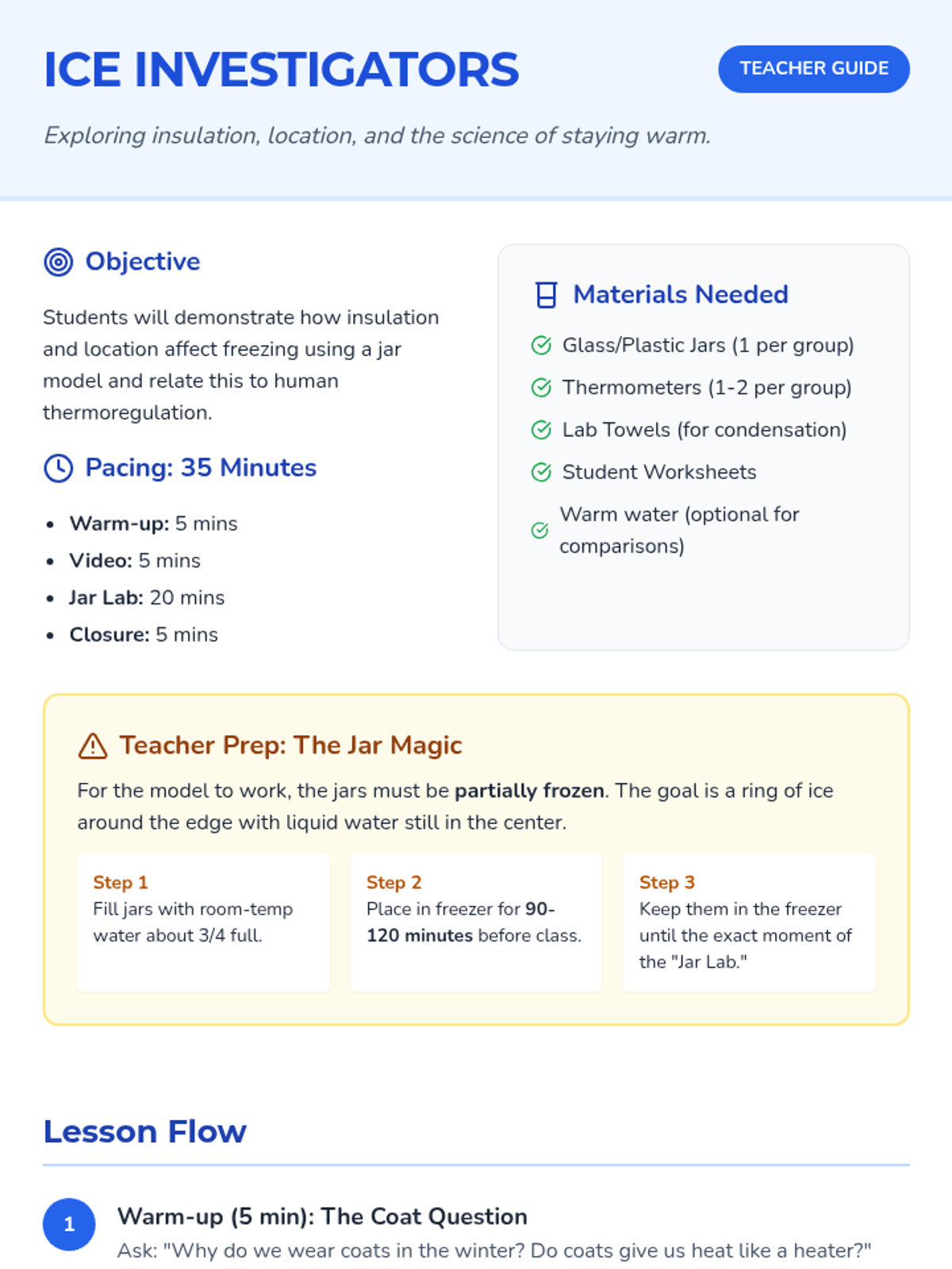 A 2nd-grade science lesson exploring how insulation and location affect freezing, using a jar model and a body analogy inspired by the 'brain freeze' phenomenon.