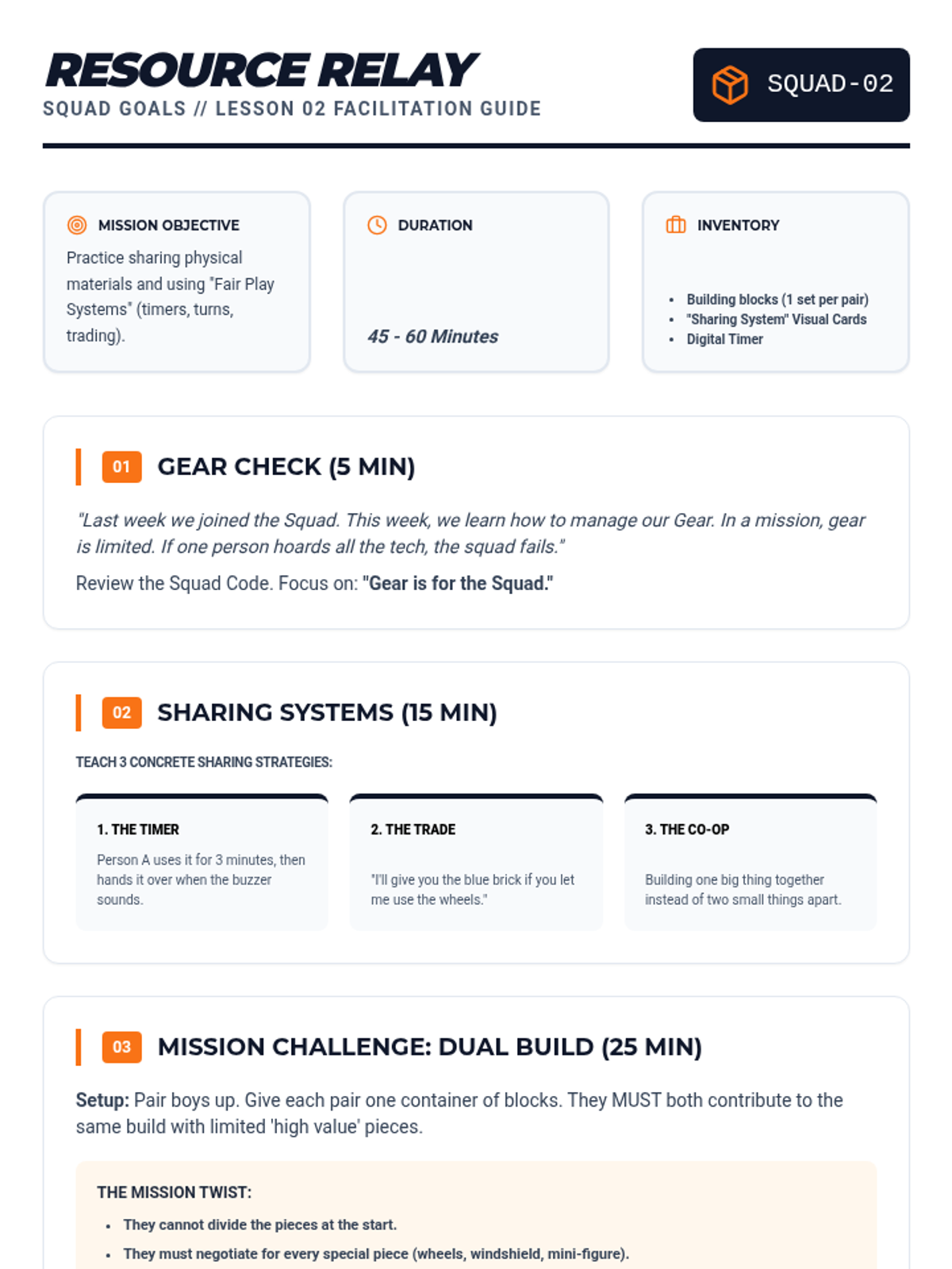 Introduction to the concept of a 'Squad' and establishing group norms and the 'Team Code'.
