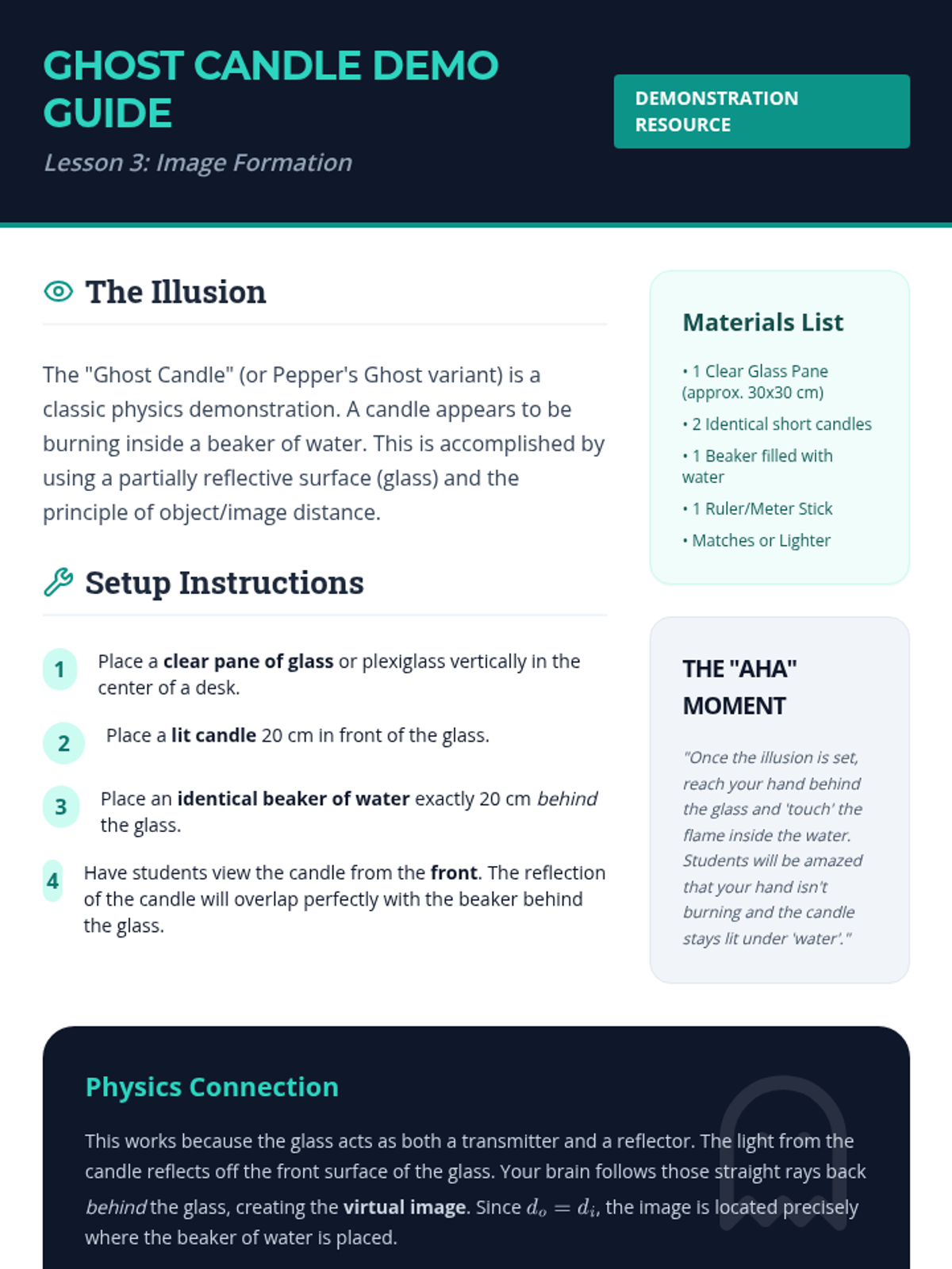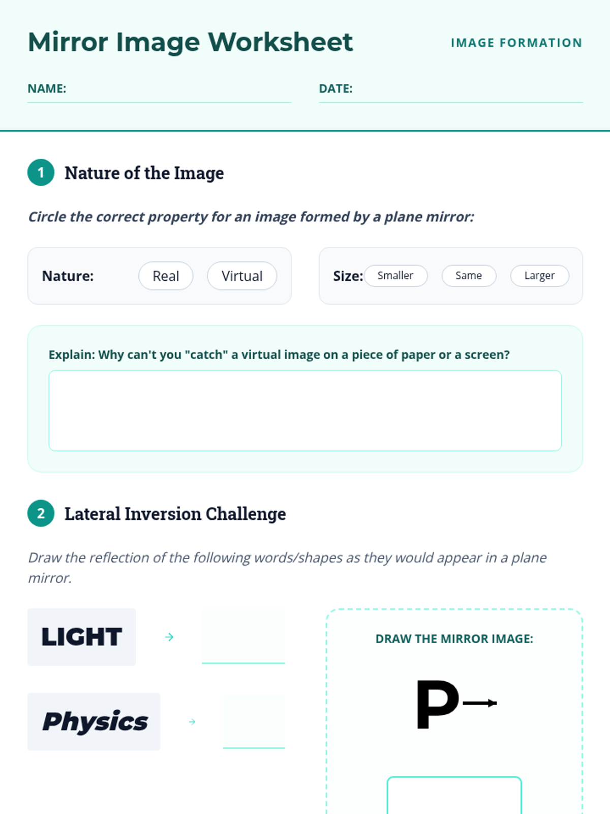 Investigating how images form behind a plane mirror, exploring virtual images, object/image distance, and lateral inversion.