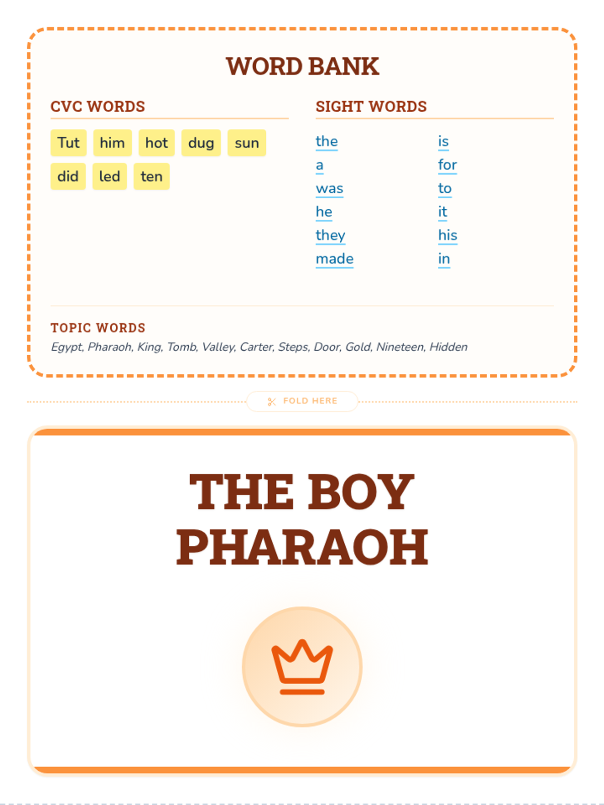 A lesson introducing King Tutankhamun, focusing on his life as a young pharaoh and the discovery of his hidden tomb in the Valley of the Kings.