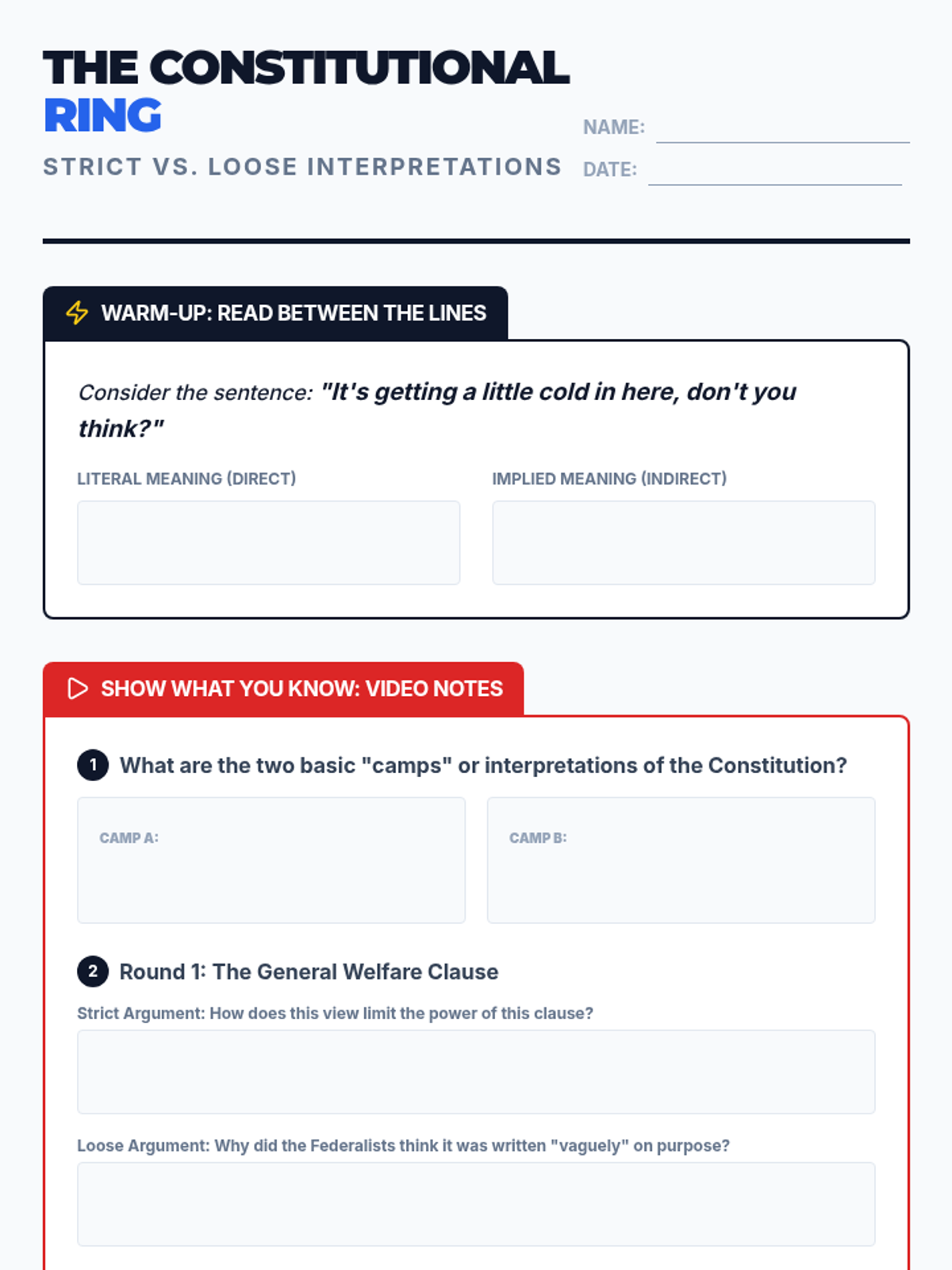 Students will explore the debate between strict and loose interpretations of the Constitution, focusing on the General Welfare and Necessary and Proper clauses to understand how implied powers are derived and applied.