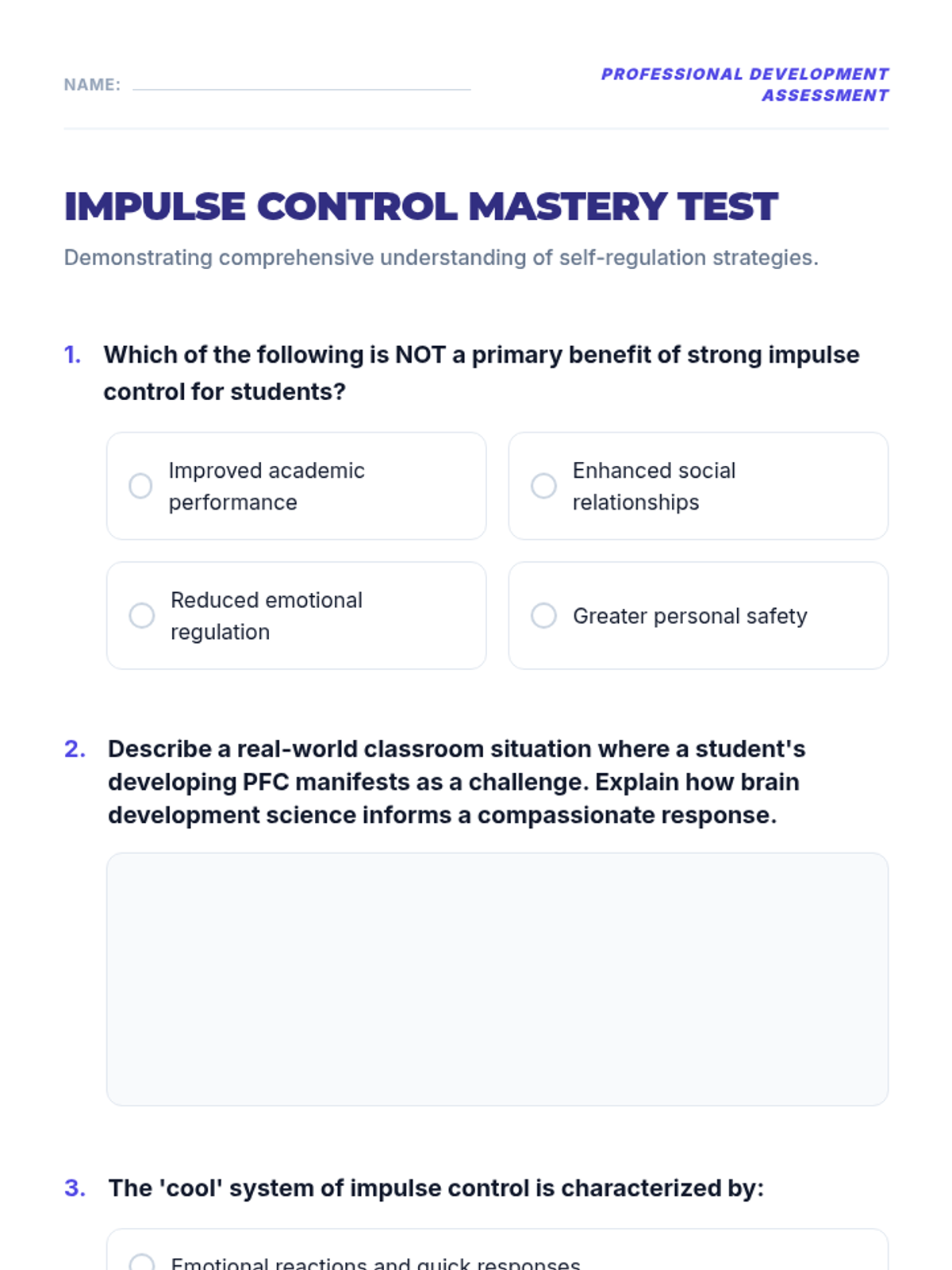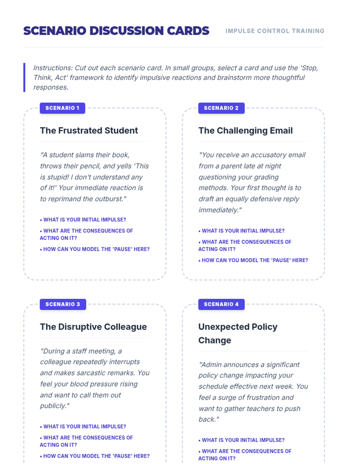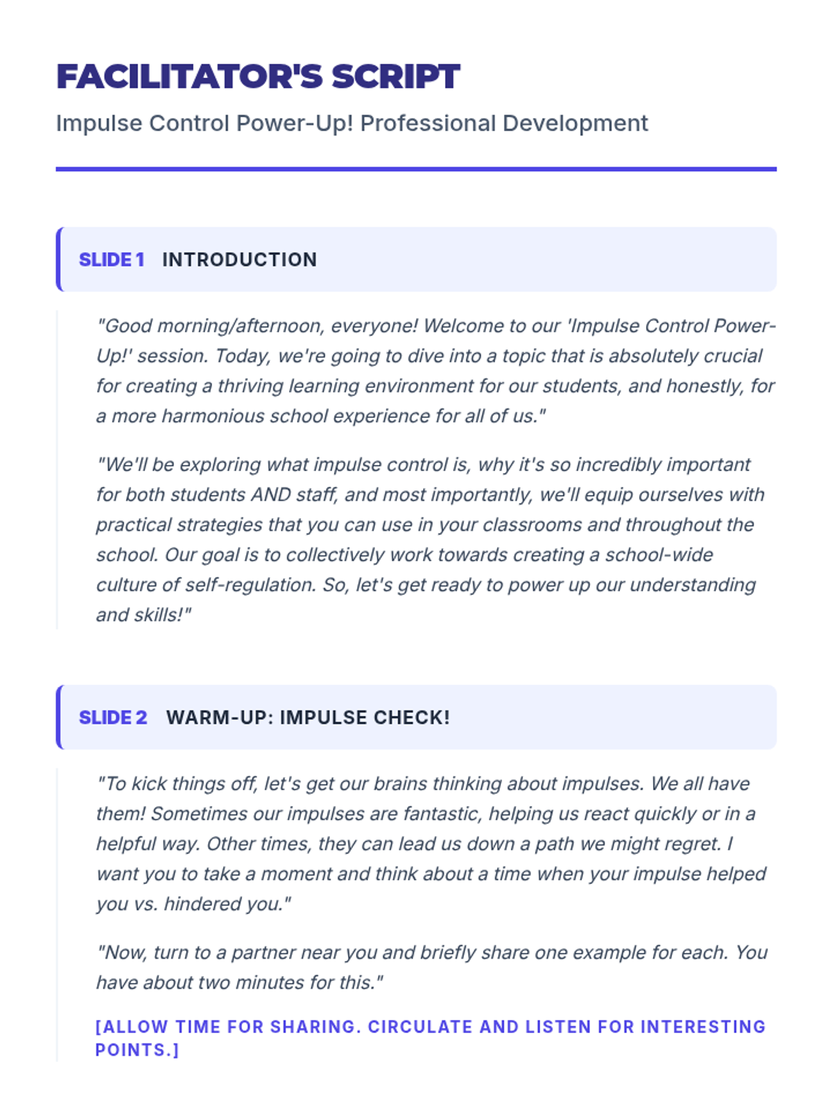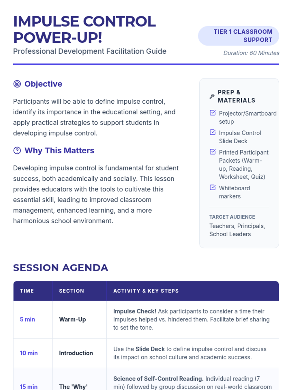 A 1-hour professional development session for educators focused on understanding the science of impulse control and implementing practical strategies to support student self-regulation.
