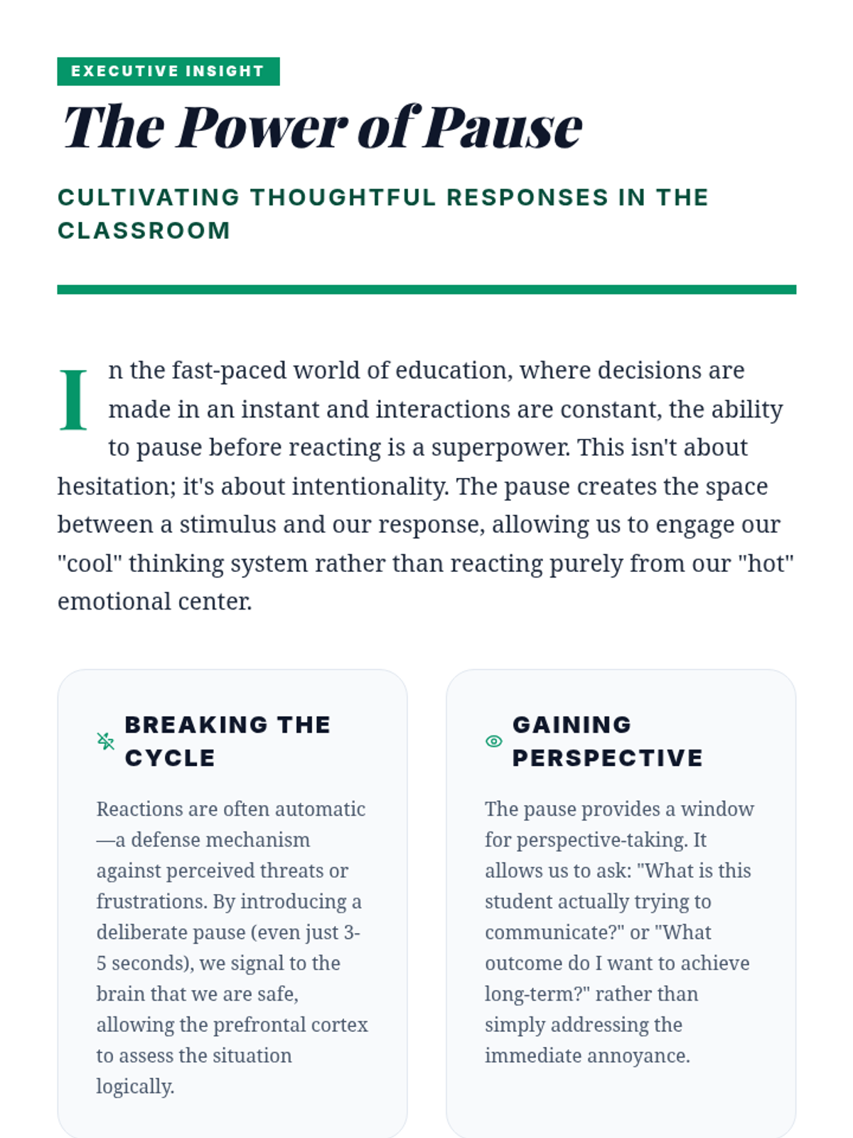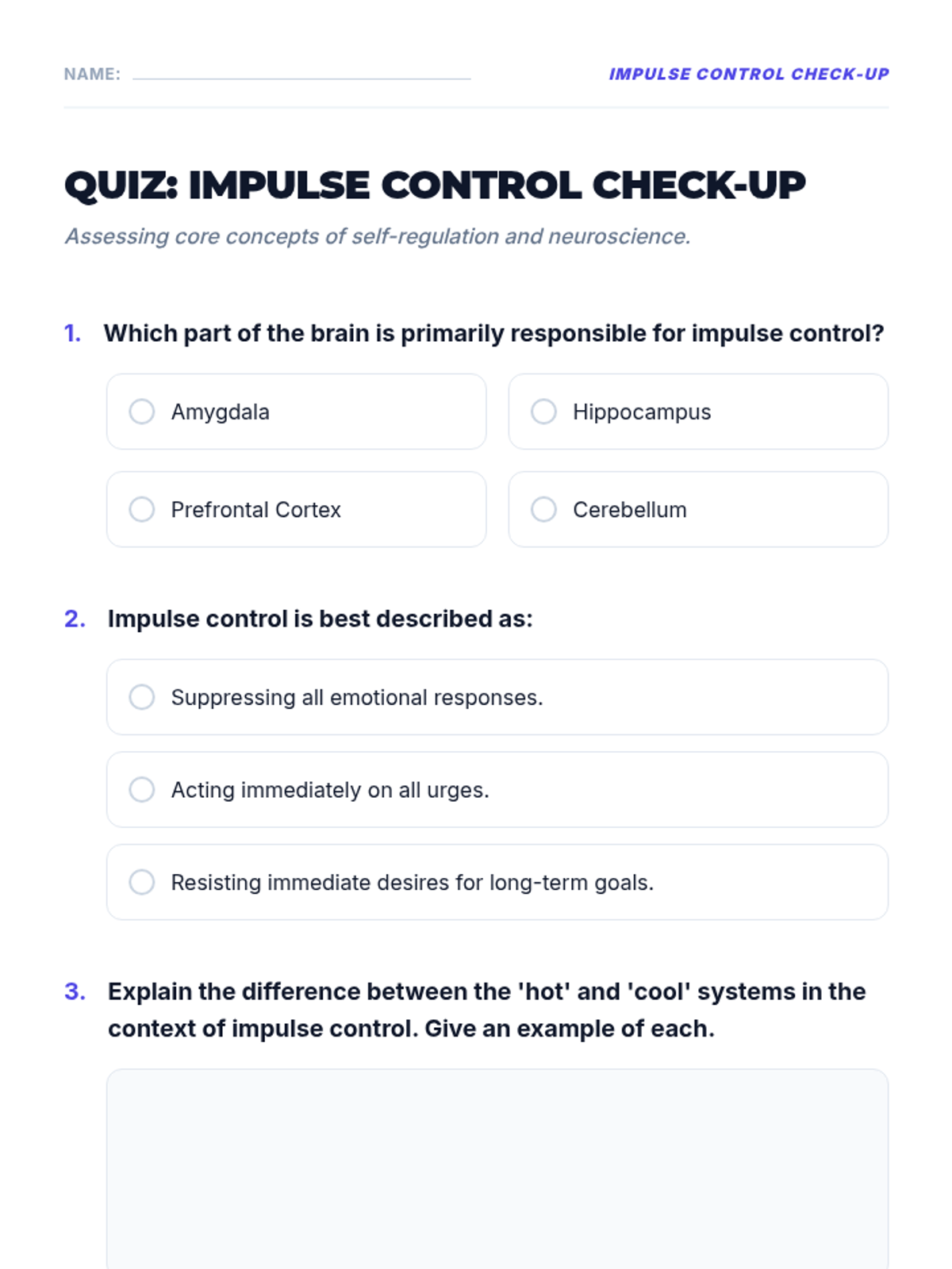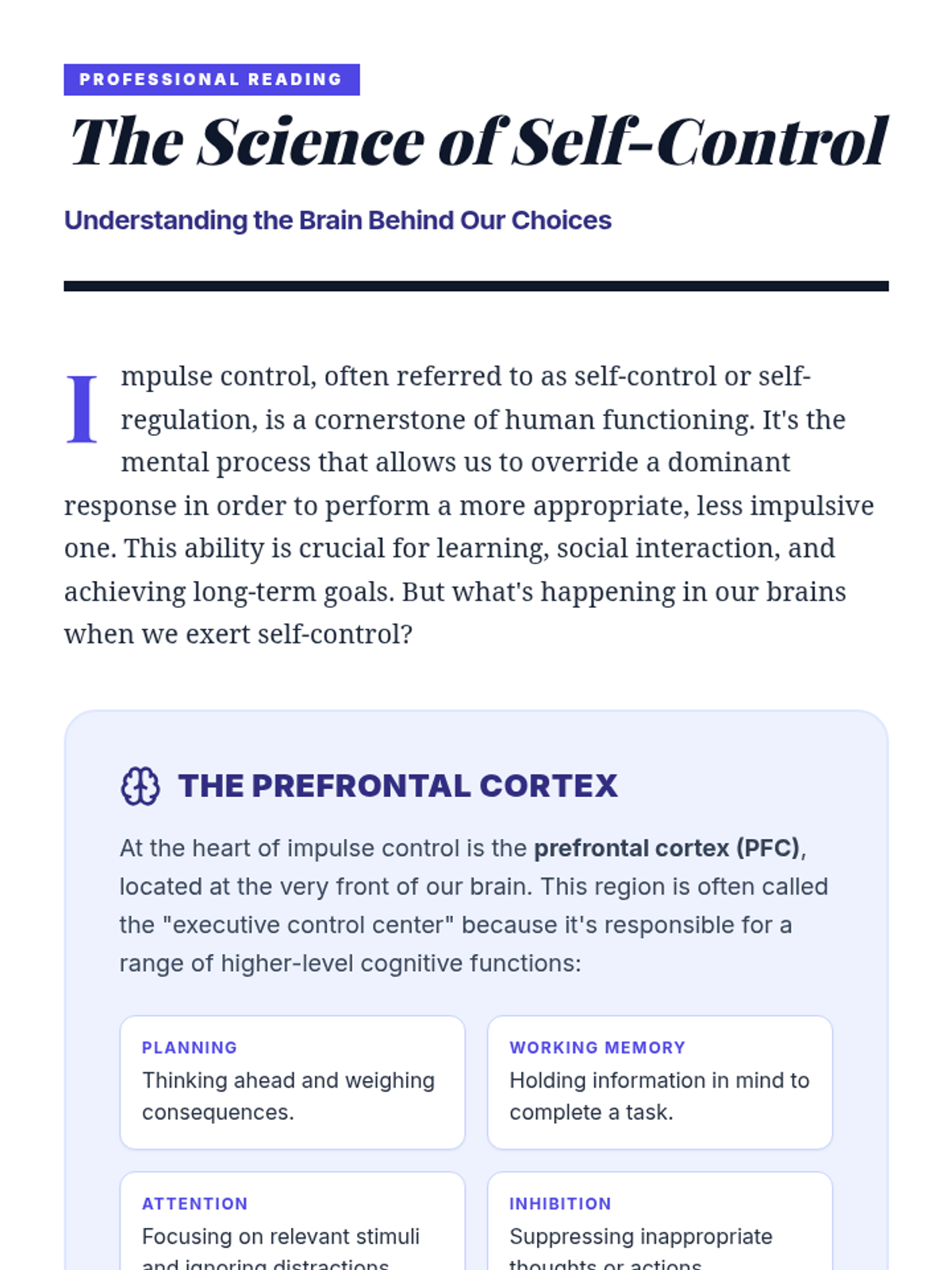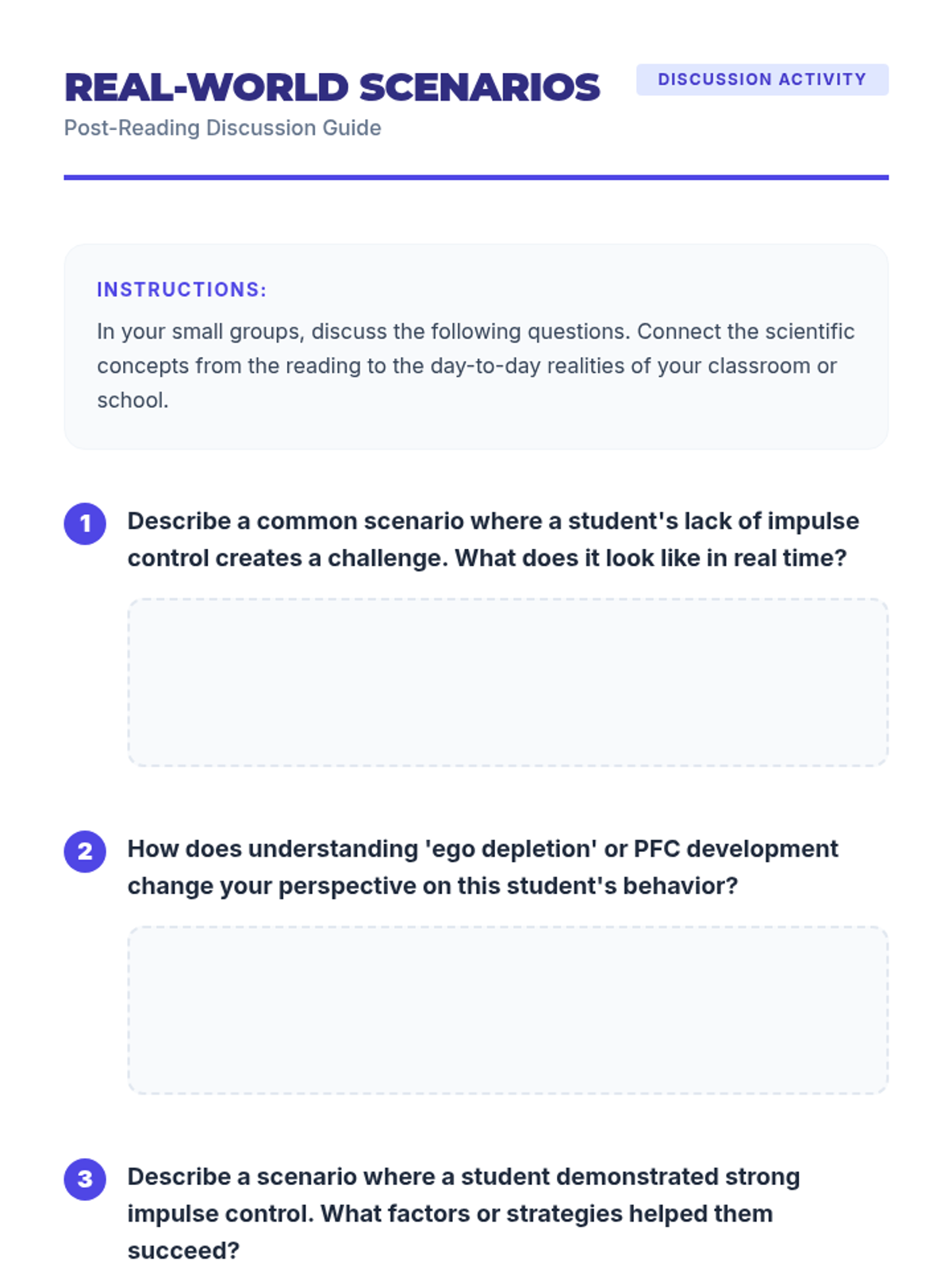 A 1-hour professional development session for educators focused on understanding the science of impulse control and implementing practical strategies to support student self-regulation.
