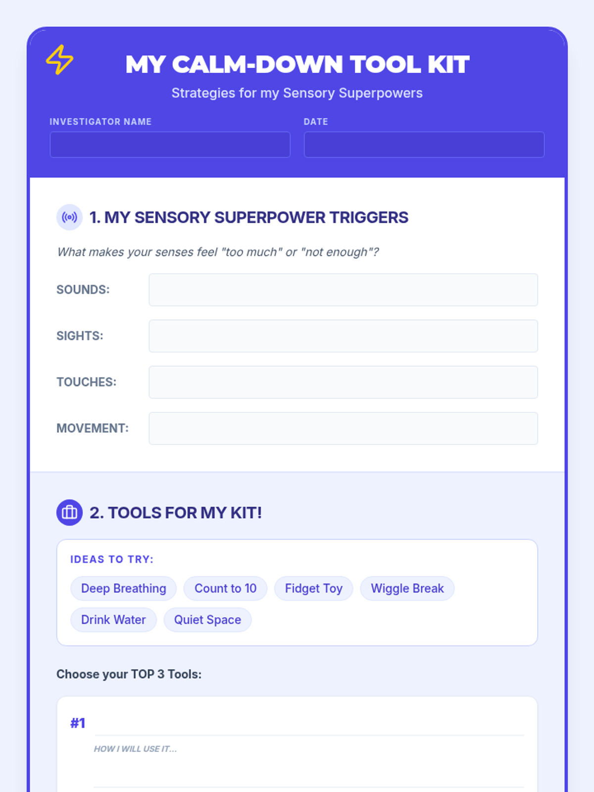 A comprehensive behavior management system designed for elementary students to build self-regulation skills. This kit includes a daily tracking chart focused on 'Cool Voices' and 'Safe Hands', a customizable reward menu, and a guide for educators to implement the system with consistency and positive reinforcement.