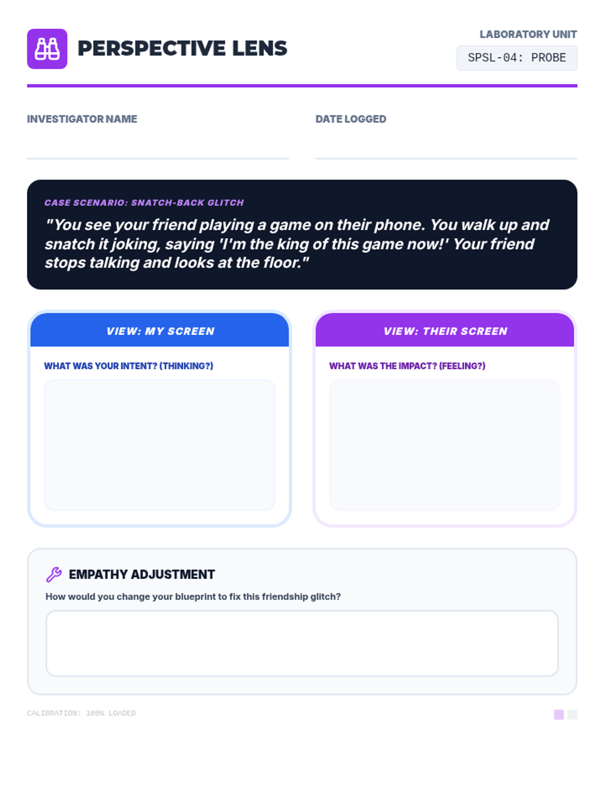 Students explore how their choices affect others' feelings and perspectives during a social conflict.