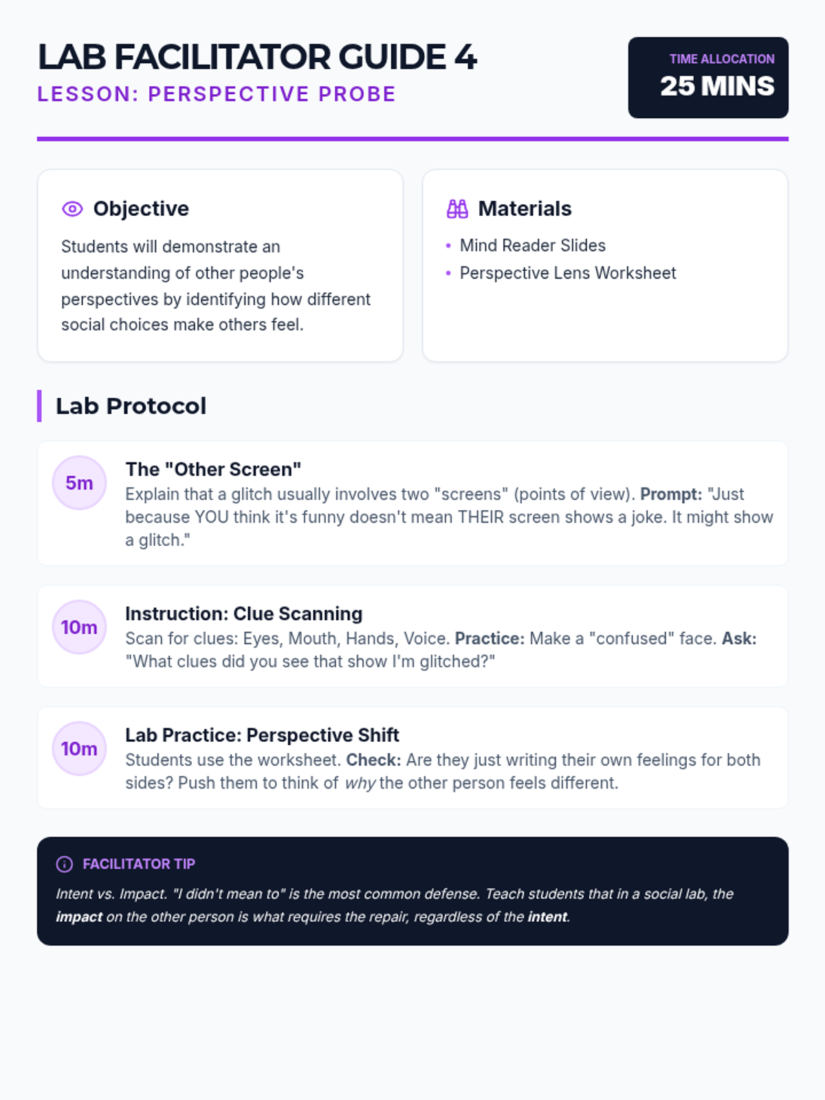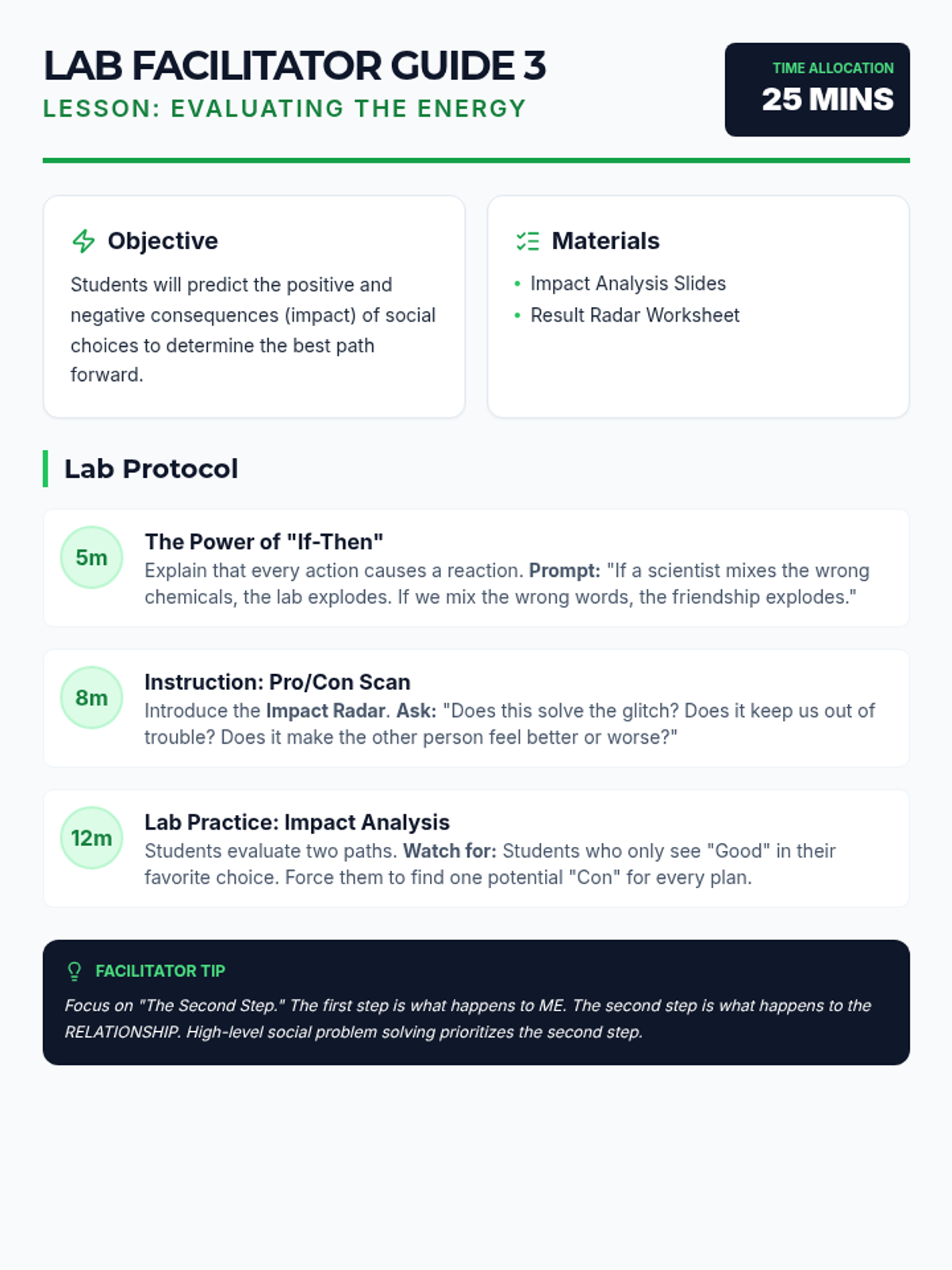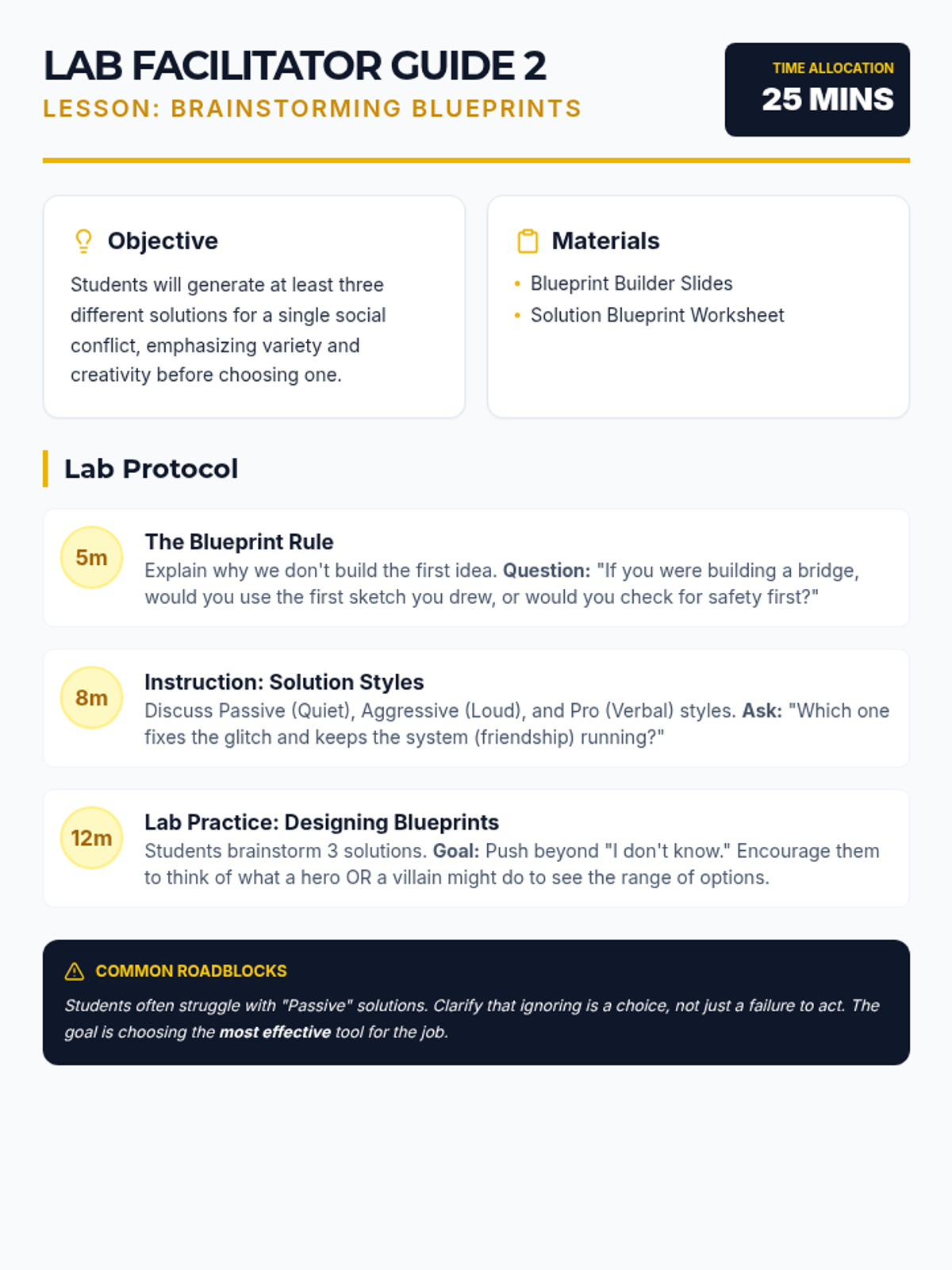 A cumulative lesson where students apply the full problem-solving protocol to real-world scenarios through role-play and reflection.