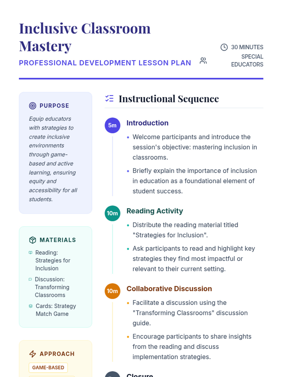A professional development session for special education educators focusing on practical inclusion strategies through collaborative and game-based learning.