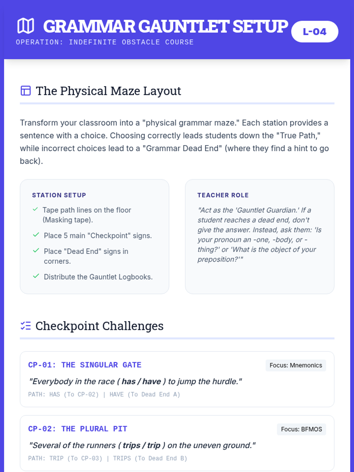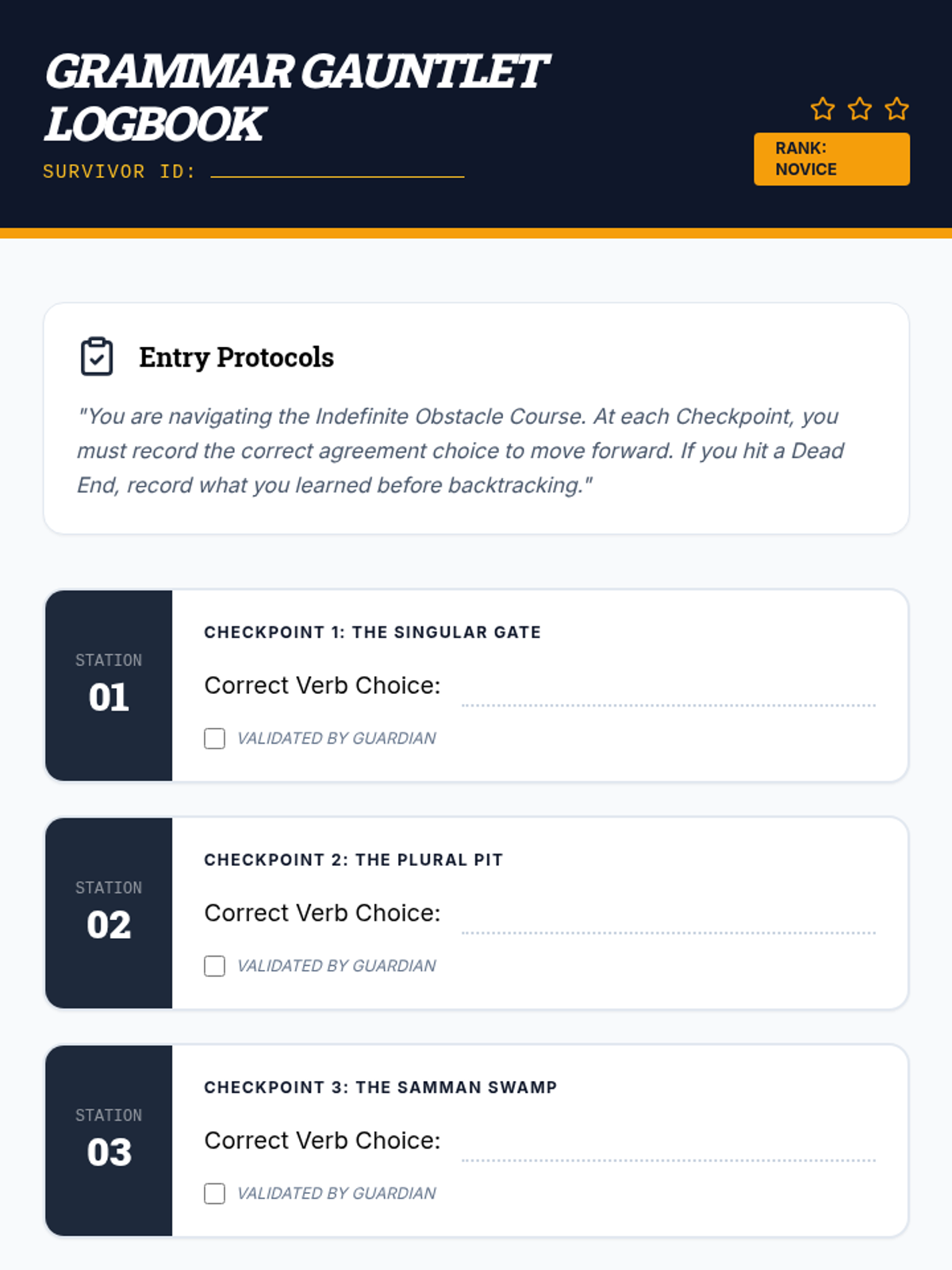 A gamified review where students move through physical or digital stations to solve complex pronoun-verb agreement challenges.