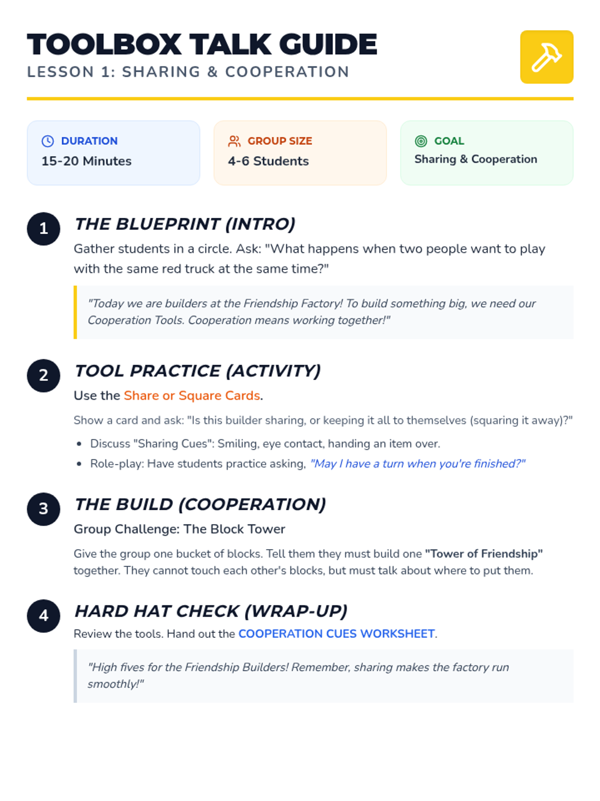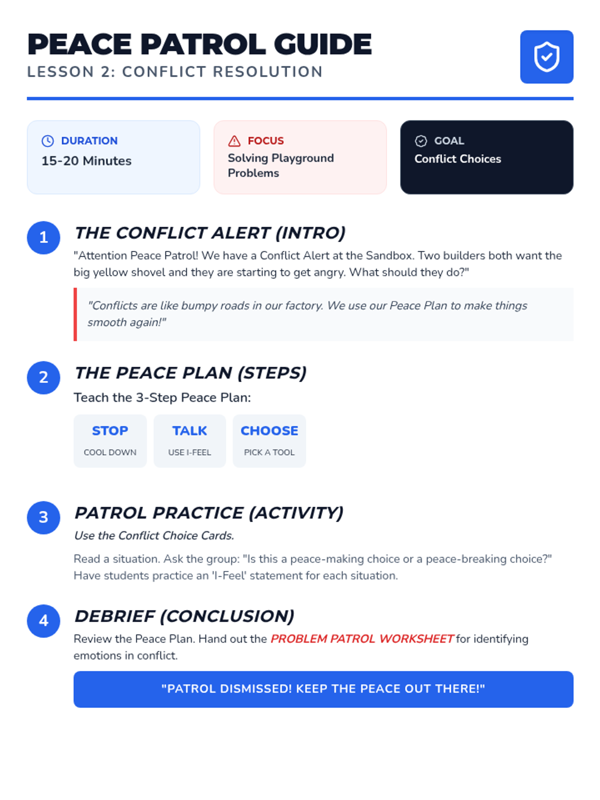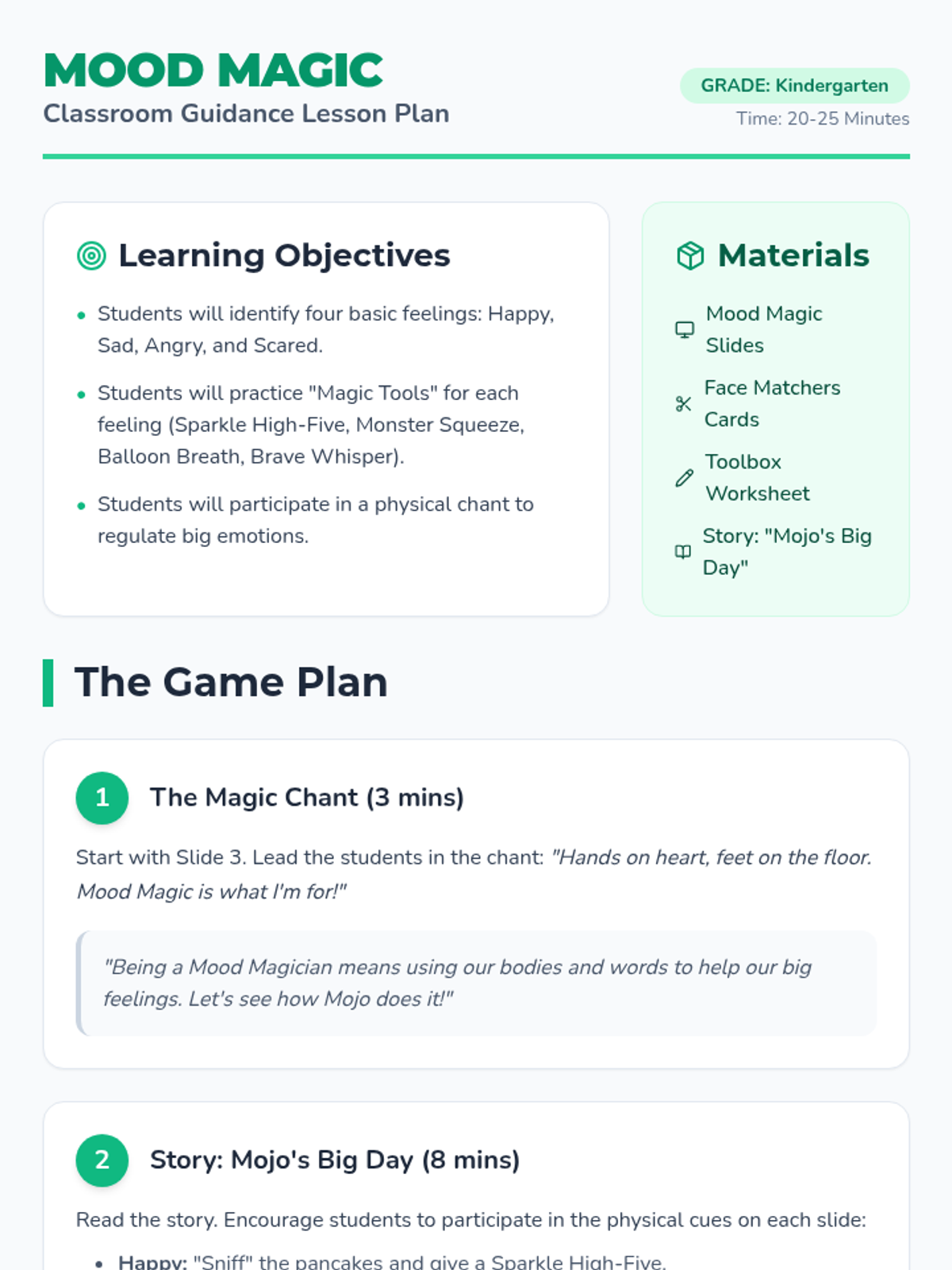 A focused 25-minute session designed to help students recognize internal cues and independently choose coping strategies before emotional escalation occurs. The lesson uses a 'Self-Regulation Lab' theme to frame emotional management as a technical skill.