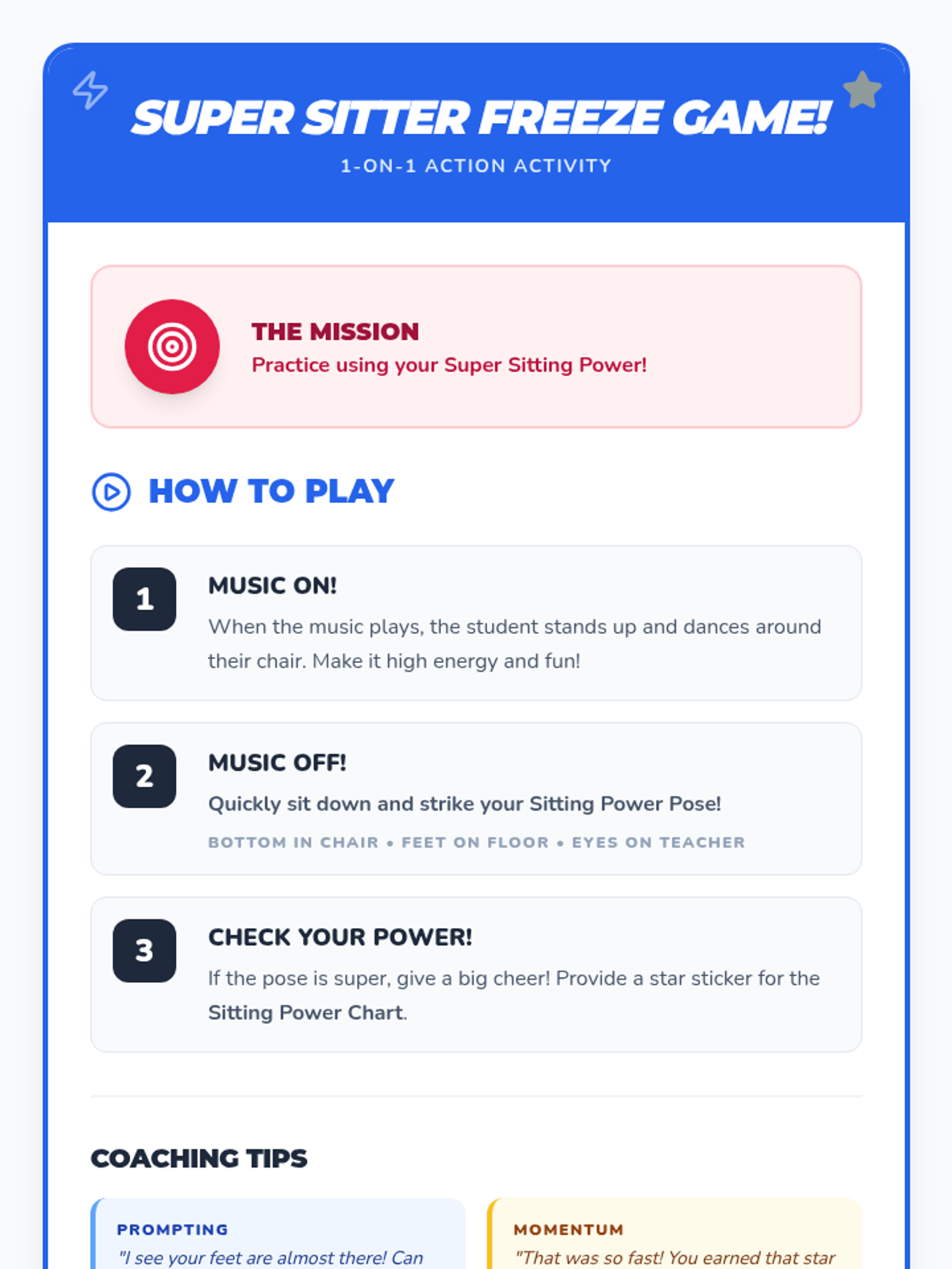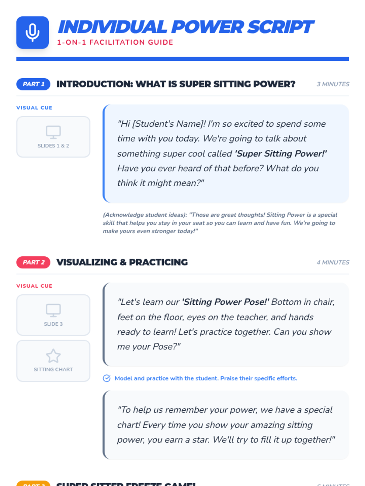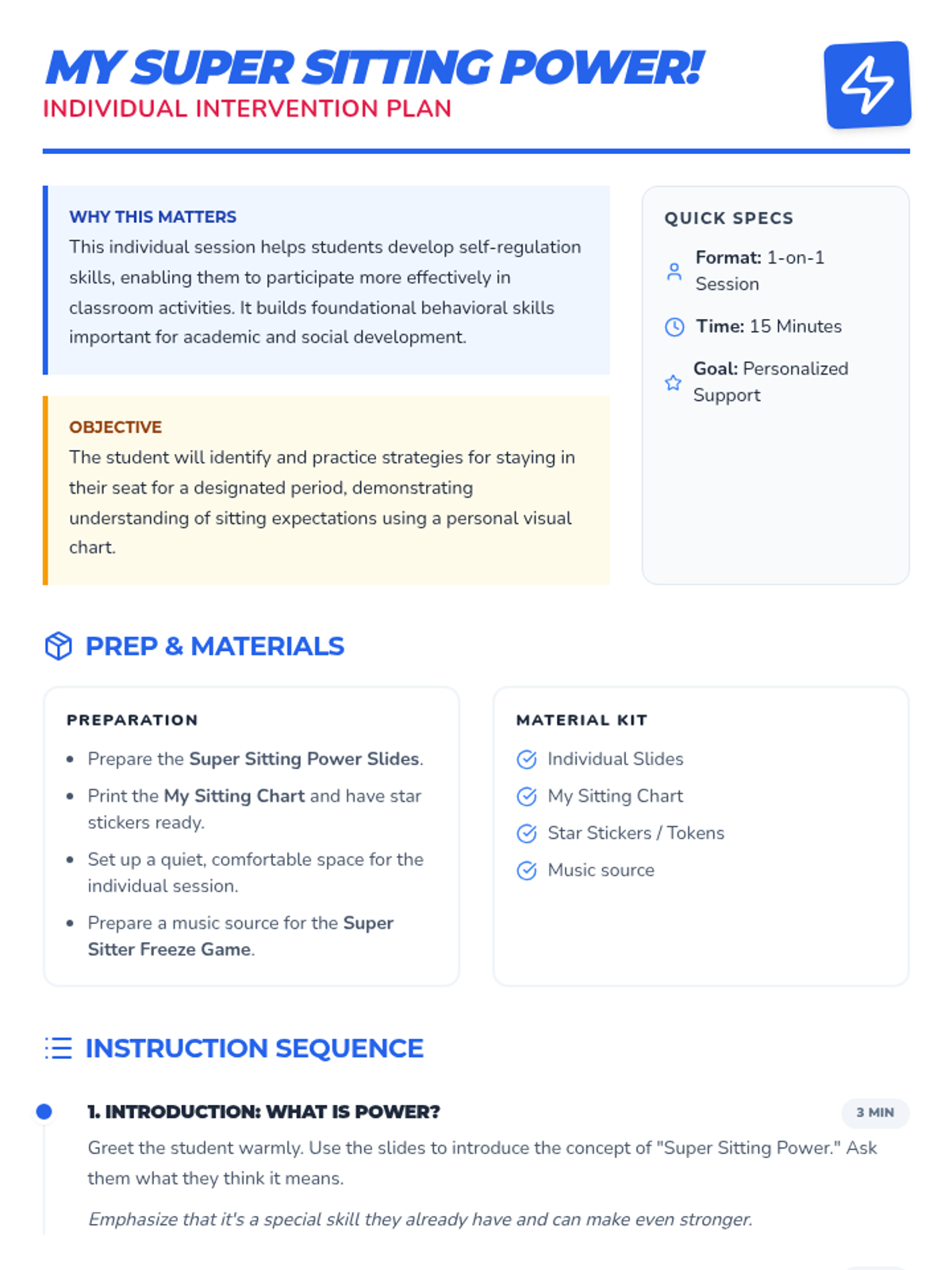 A 15-minute 1-on-1 intervention for students needing extra support, featuring a personalized sitting chart and guided practice.