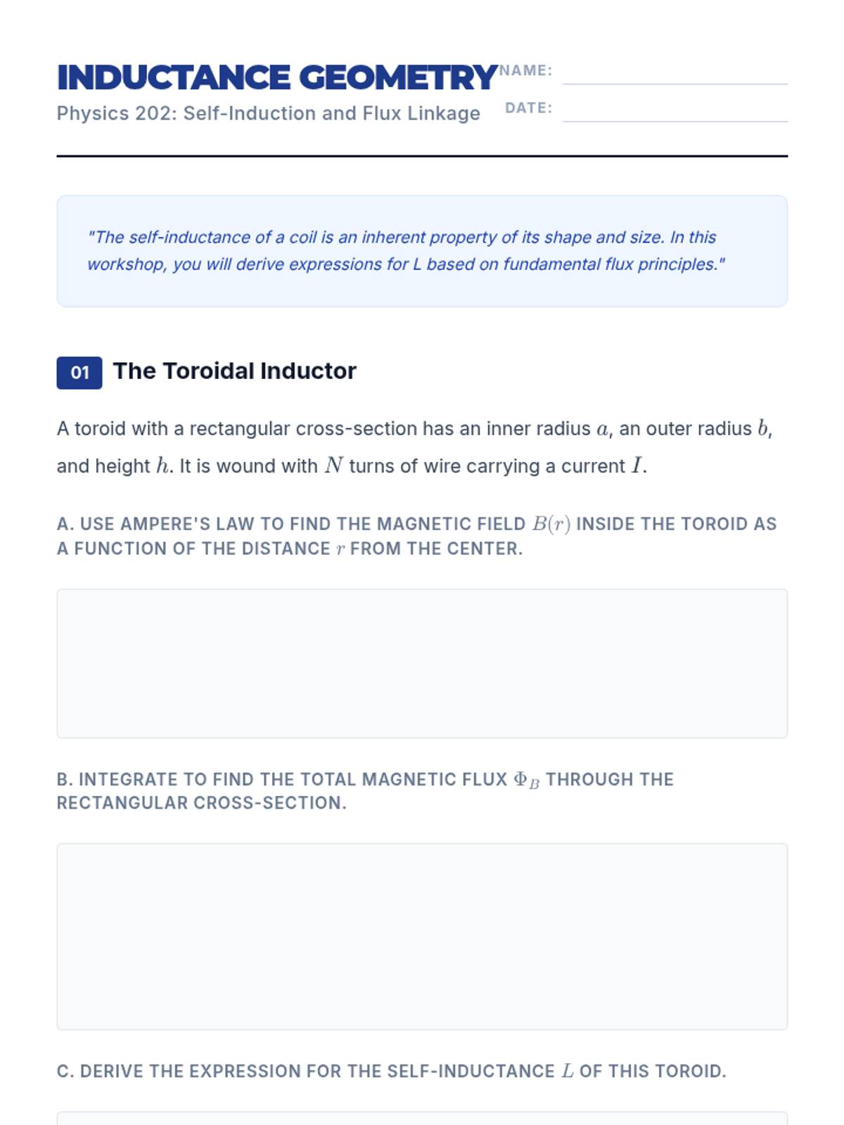 Students are introduced to the concept of self-inductance and the inductor as a circuit element. They calculate the inductance of solenoids and toroids based on geometry. The lesson explains how inductors oppose changes in current, acting as 'electrical inertia'.