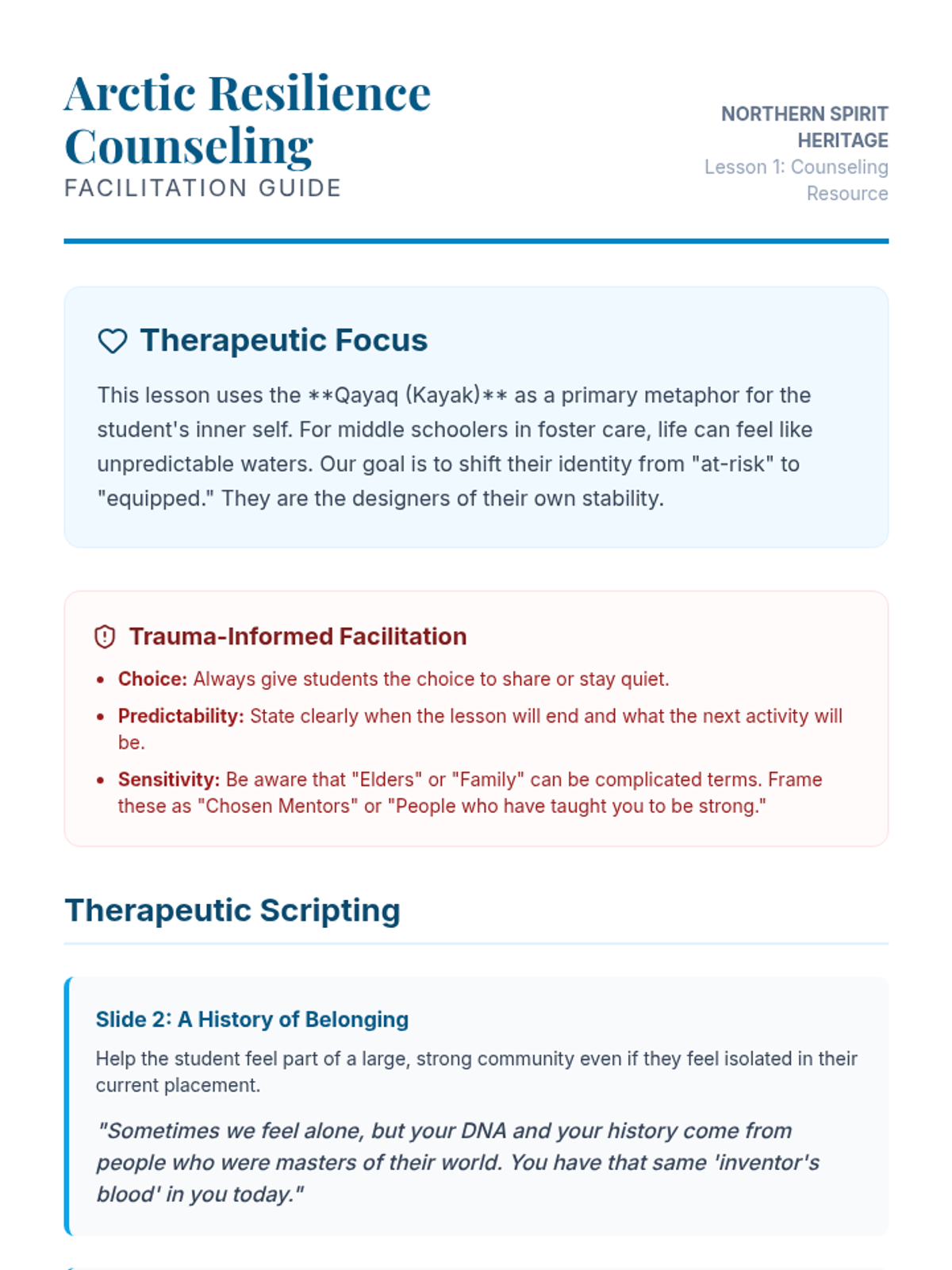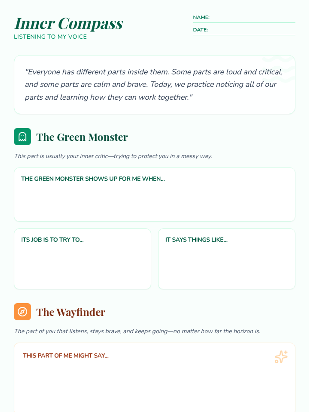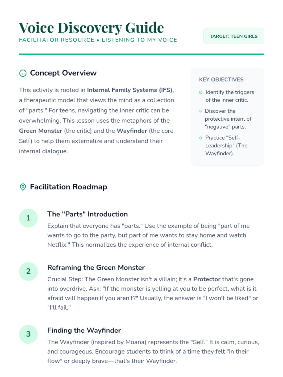 A lesson focused on Internal Family Systems (IFS) concepts for teens, helping them identify and integrate their inner critic and resilient parts with self-compassion.