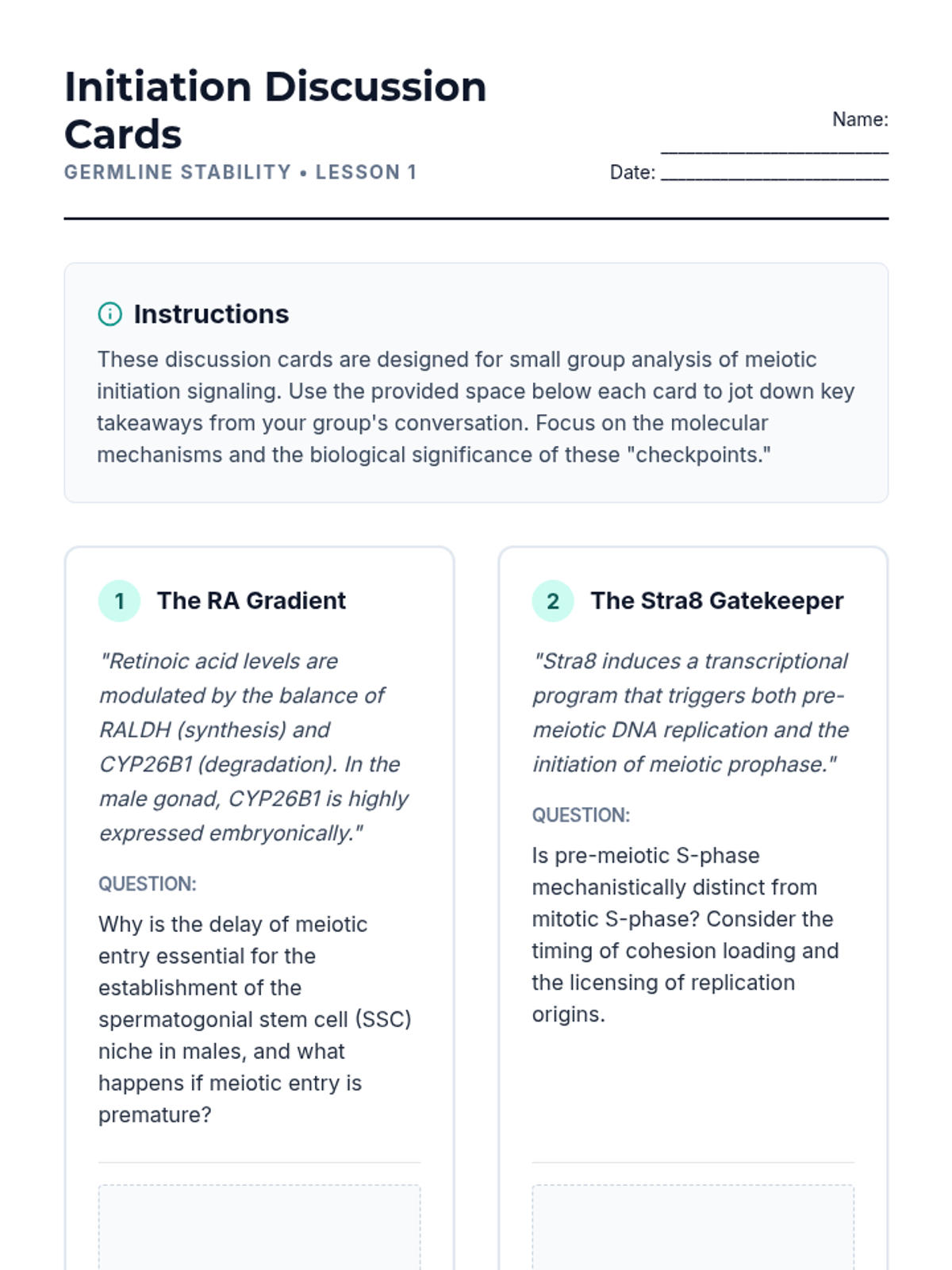 Students investigate the signaling pathways that initiate the switch from mitosis to meiosis and explore the unique chromosomal movements required for homolog recognition.