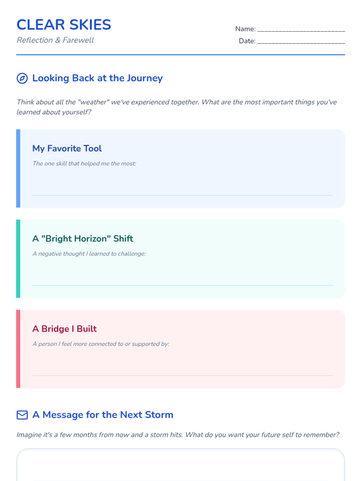 Concluding the group, celebrating progress, and preparing for life after the sessions.