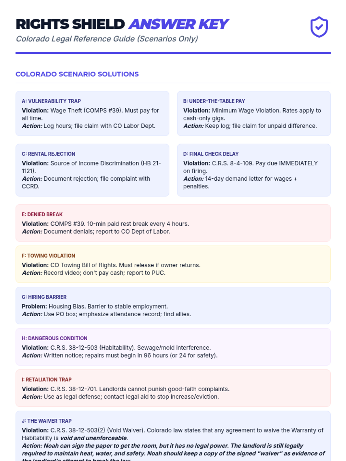 A practical empowerment lesson teaching homeless high school students their fundamental rights as tenants and employees through real-world scenarios and key terminology.