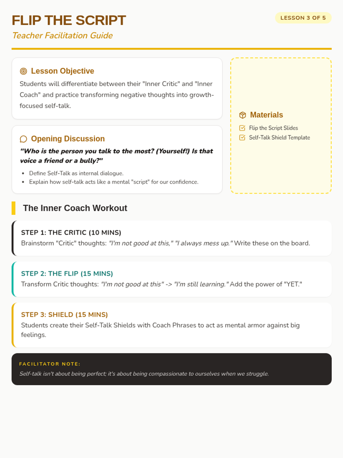 Focusing on positive self-talk to transform the 'Inner Critic' into an 'Inner Coach'.