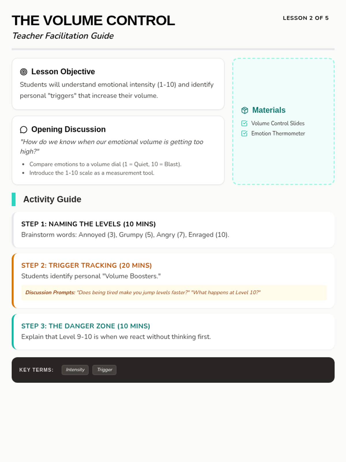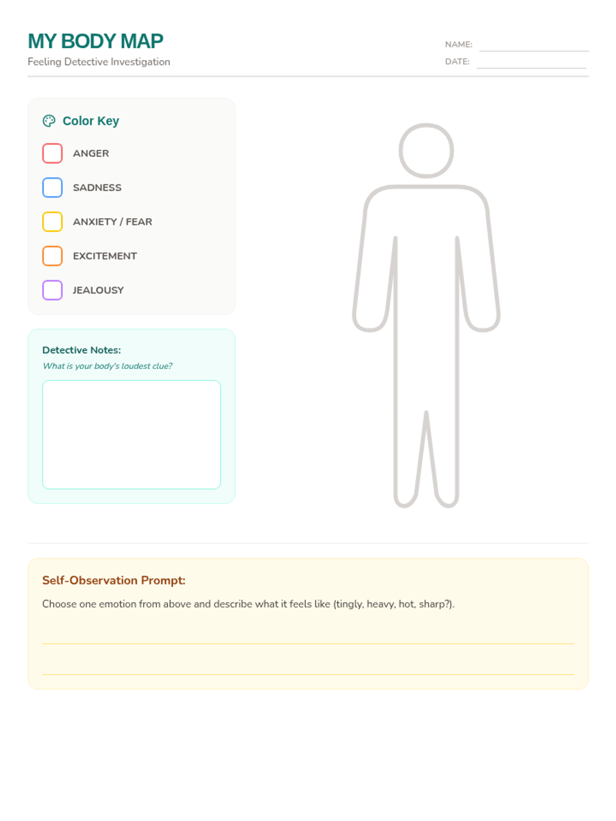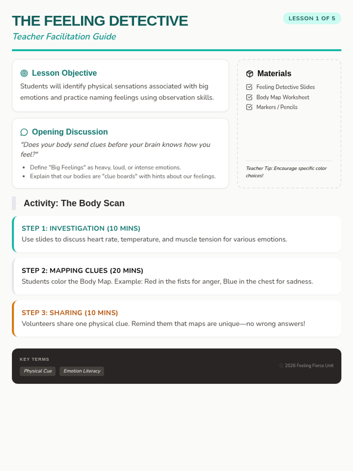 Students learn to identify where emotions live in their bodies and name 'big feelings' accurately.