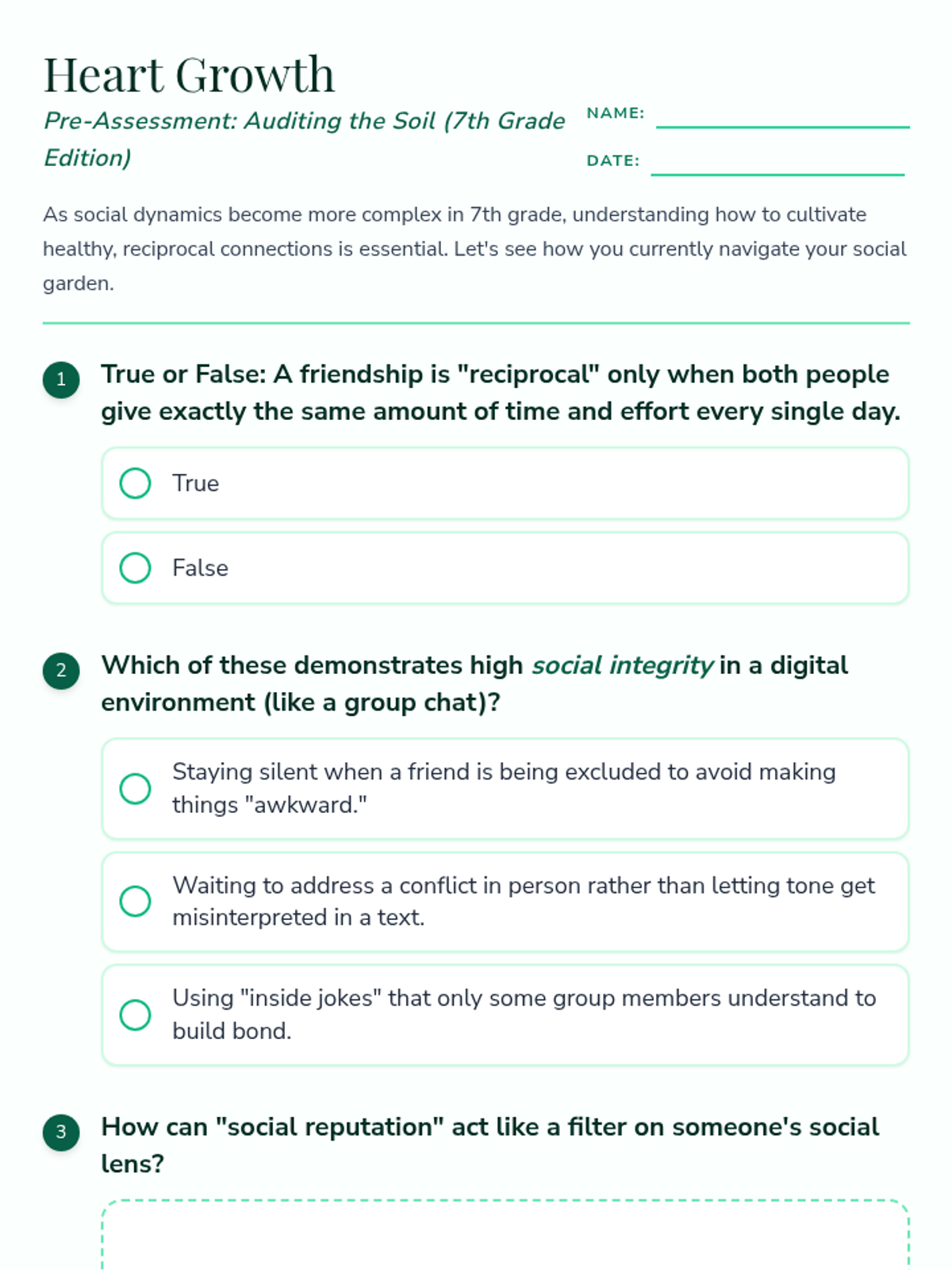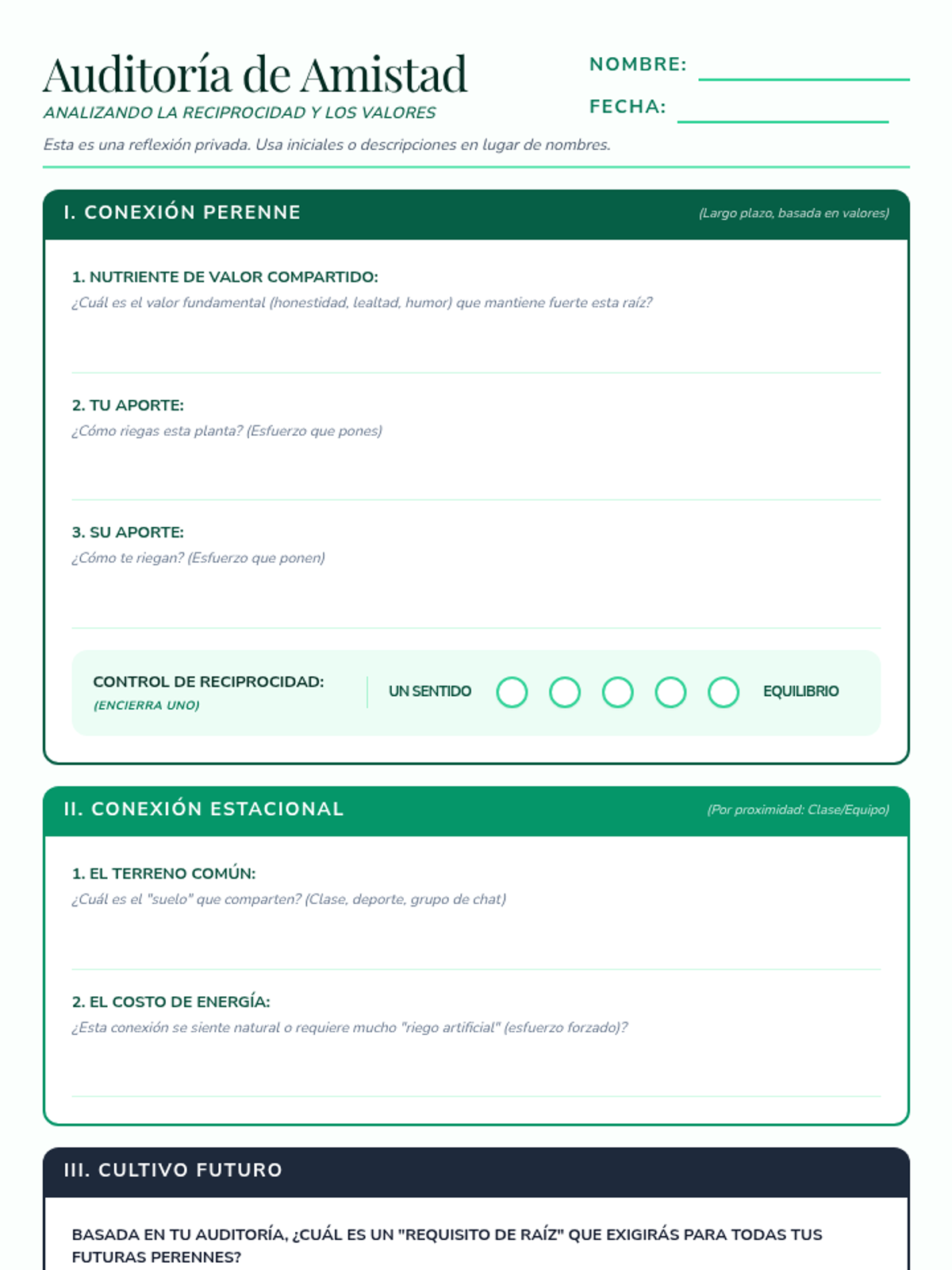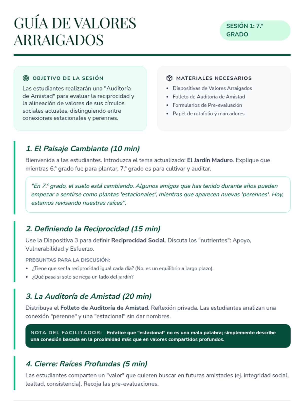 Las estudiantes realizan una 'Auditoría de Amistad', analizando la reciprocidad social y cómo las conexiones basadas en valores proporcionan estabilidad a medida que los grupos de pares cambian en 7º grado.
