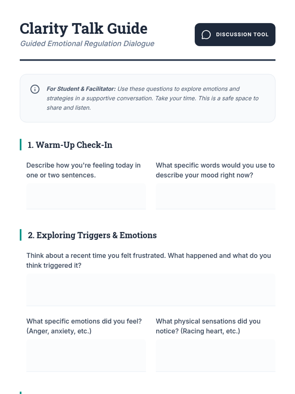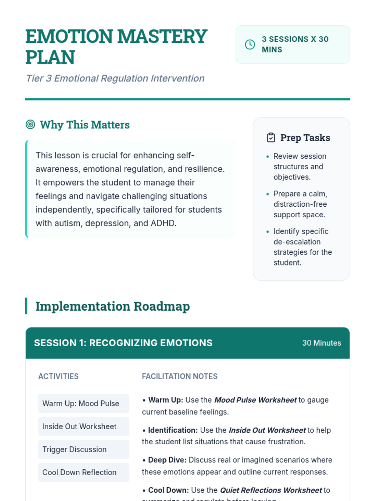 A comprehensive set of activities and guides to help students identify triggers, verbalize emotions, and implement self-selected coping strategies.