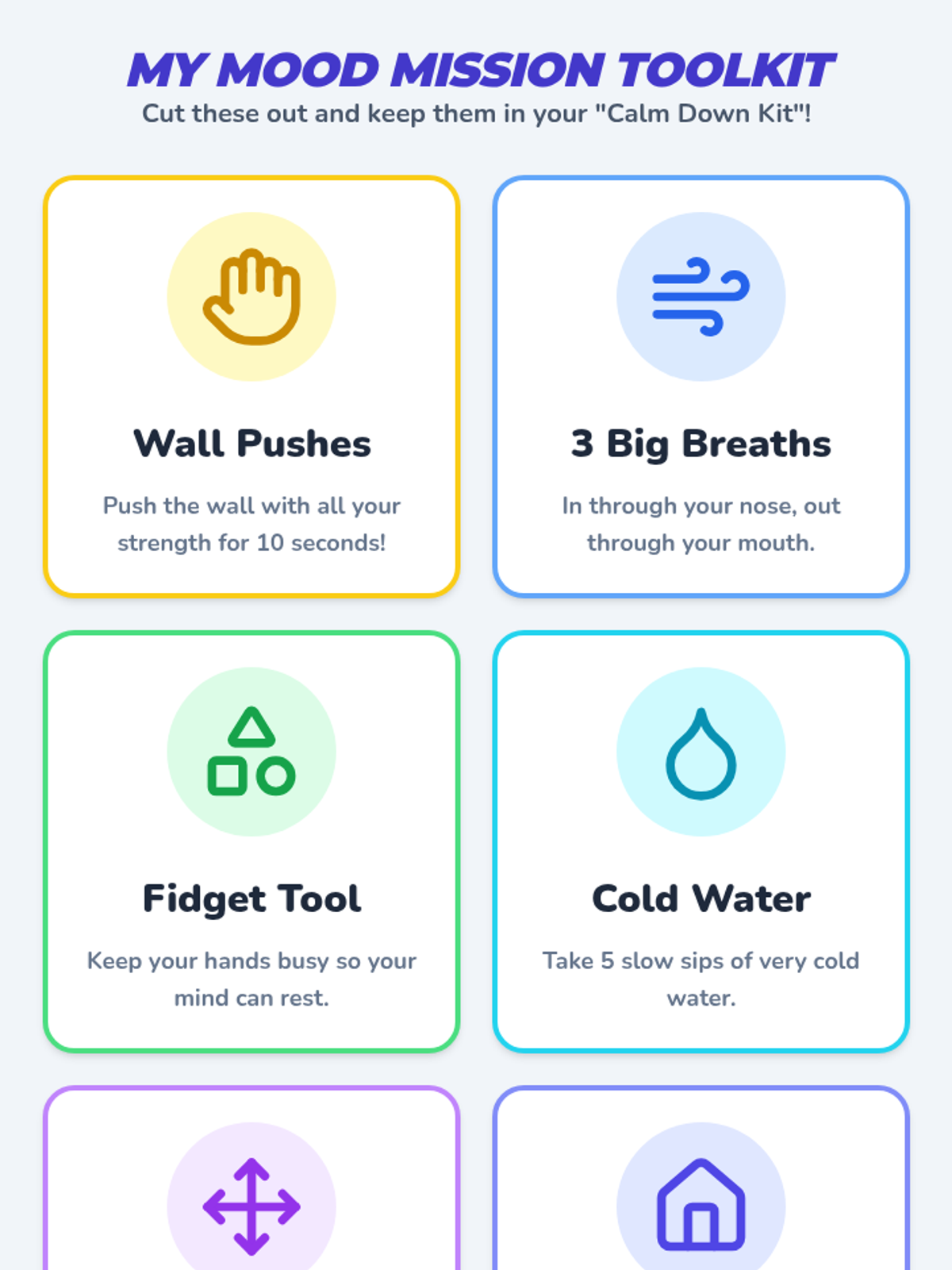 This lesson introduces the concept of emotional zones and provides a toolkit of physical and sensory-based regulation strategies specifically tailored for young learners with ADHD.