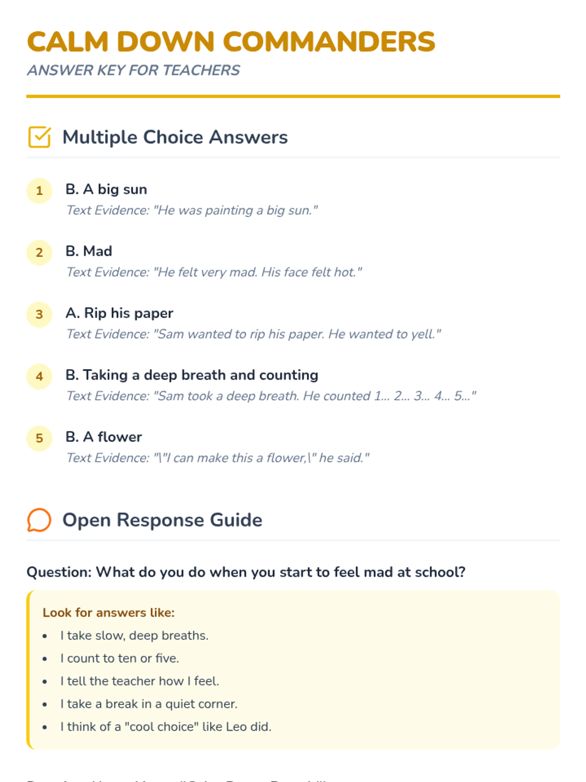 A social-emotional lesson teaching students practical strategies to manage anger and frustration in the classroom, such as deep breathing and counting.