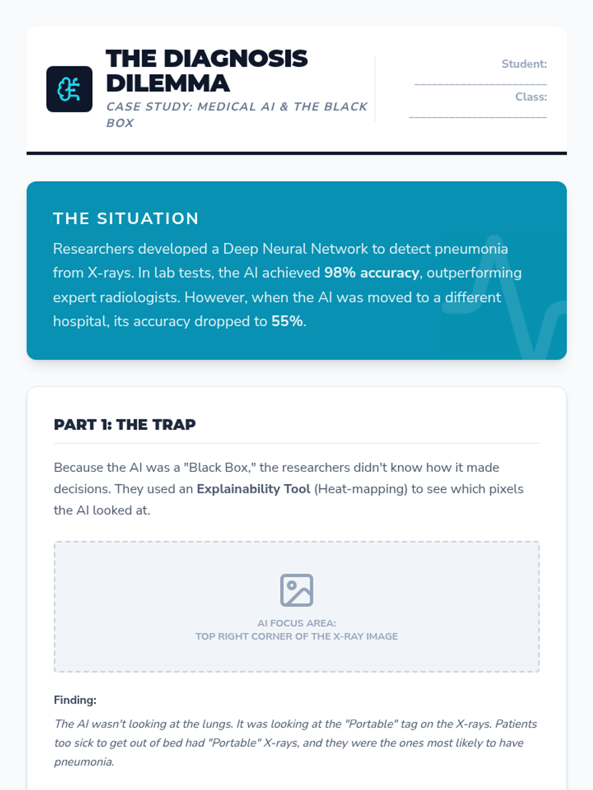 Students explore the technical difficulty of understanding neural network decisions and the trade-off between model accuracy and interpretability.