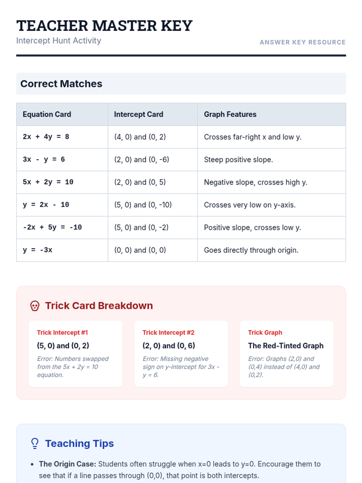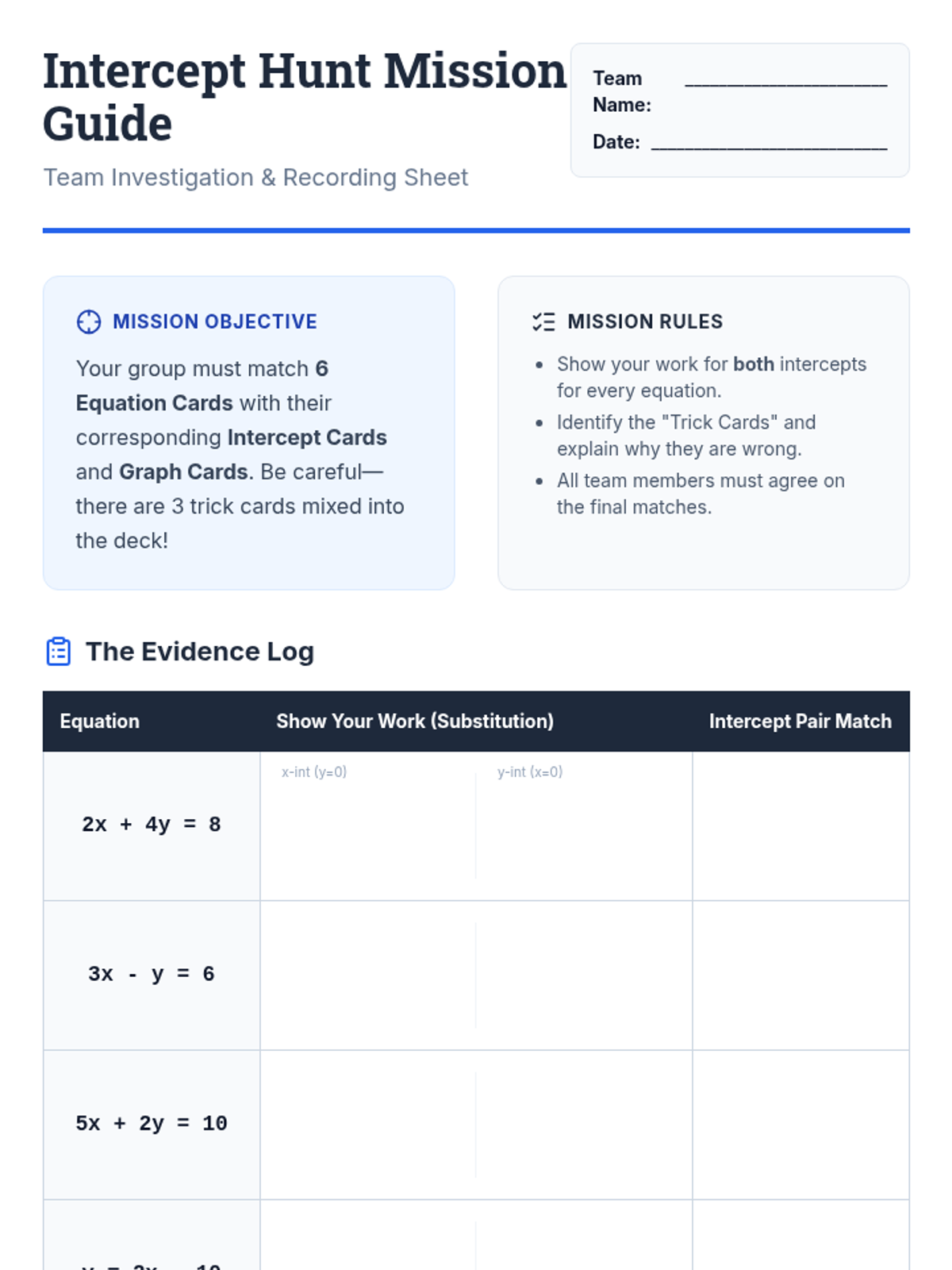 Students will master finding x and y-intercepts from various linear equations to match them with their corresponding graphs, focusing on algebraic substitution and precision with signs.