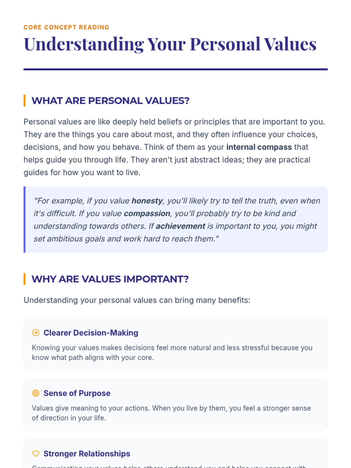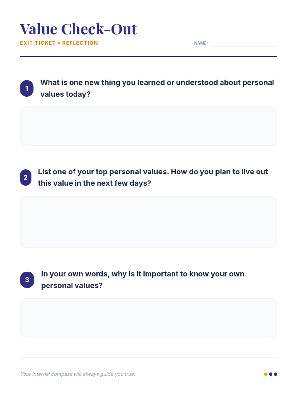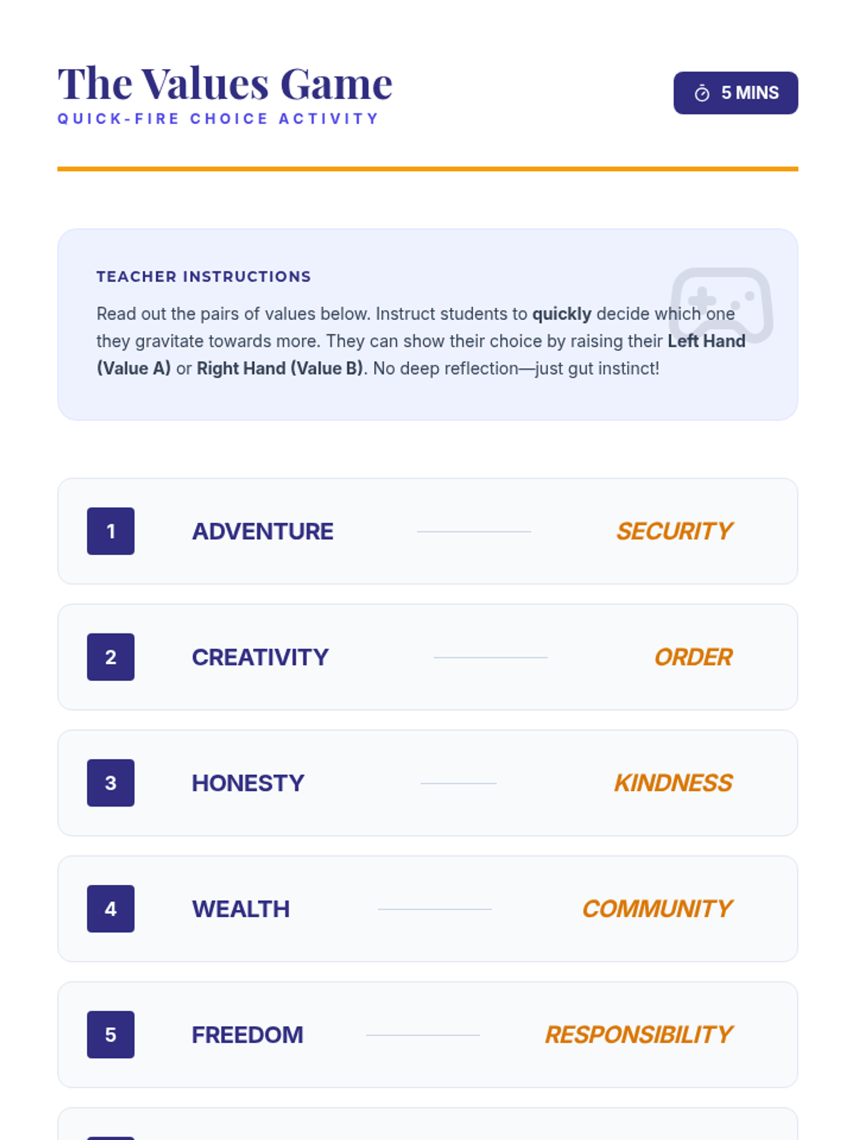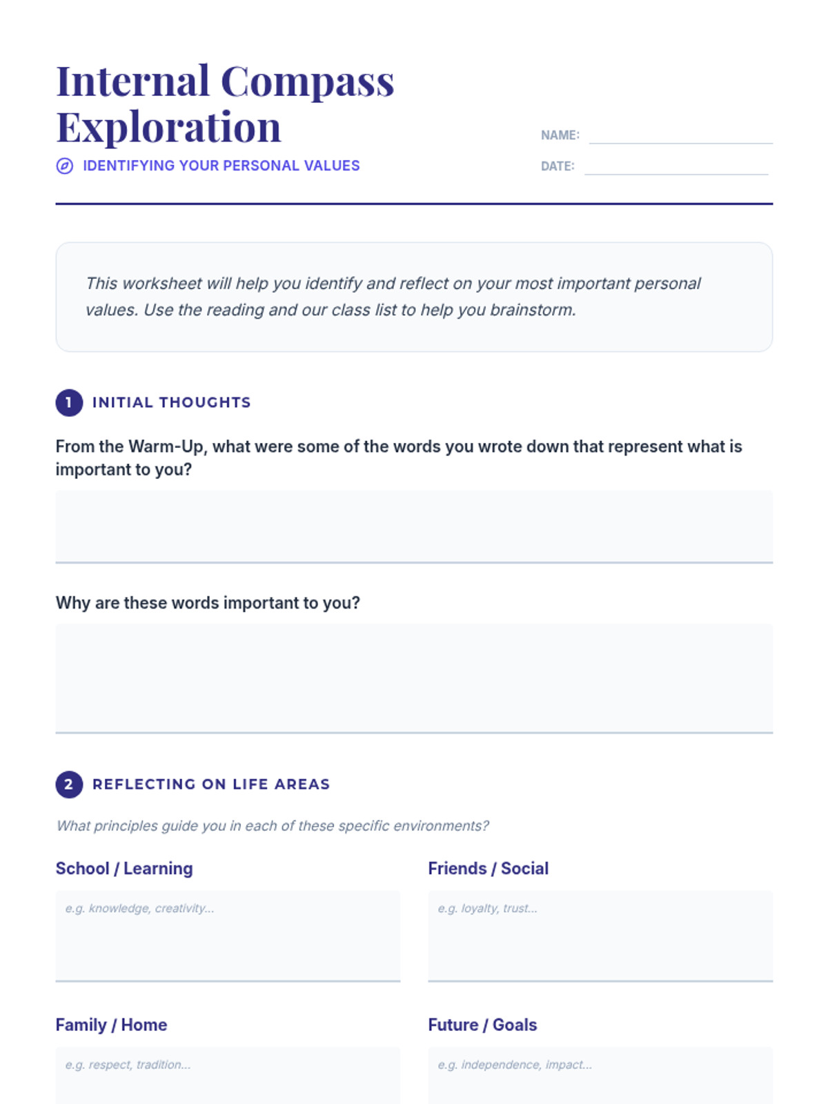 This lesson helps high school students identify and understand their personal values, providing an 'internal compass' to guide their decisions and actions through interactive discussion and self-reflection.