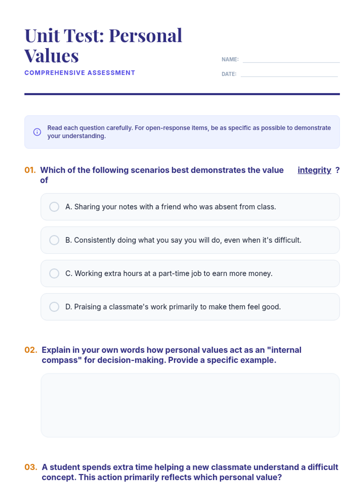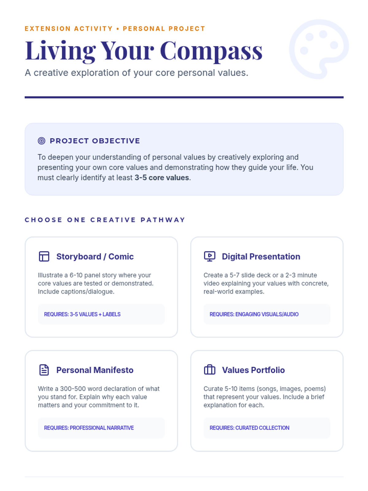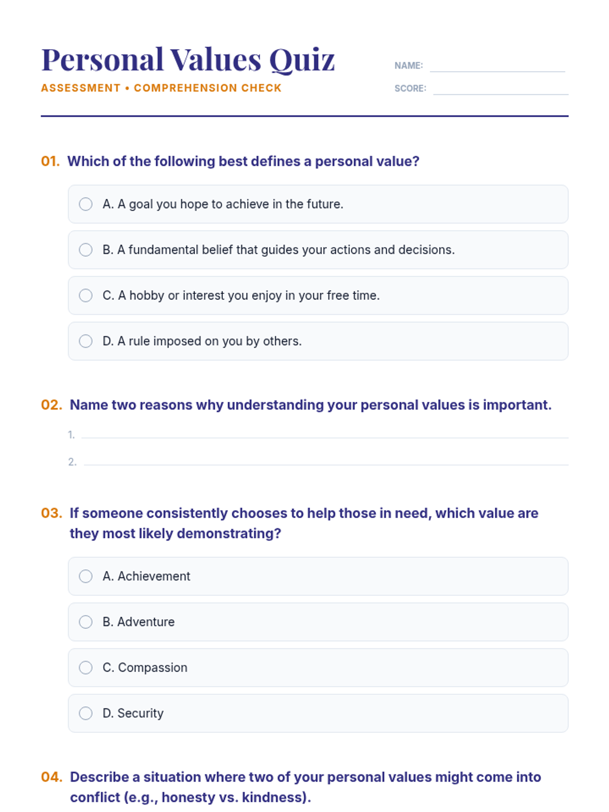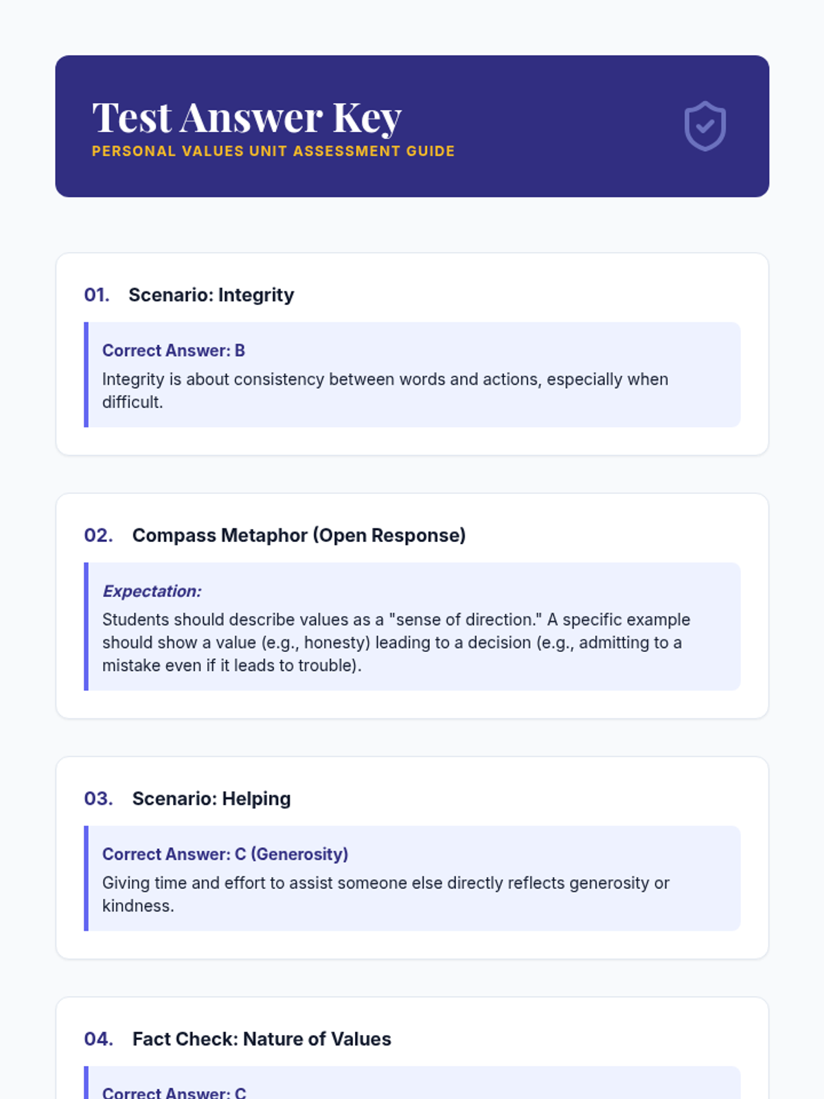 This lesson helps high school students identify and understand their personal values, providing an 'internal compass' to guide their decisions and actions through interactive discussion and self-reflection.