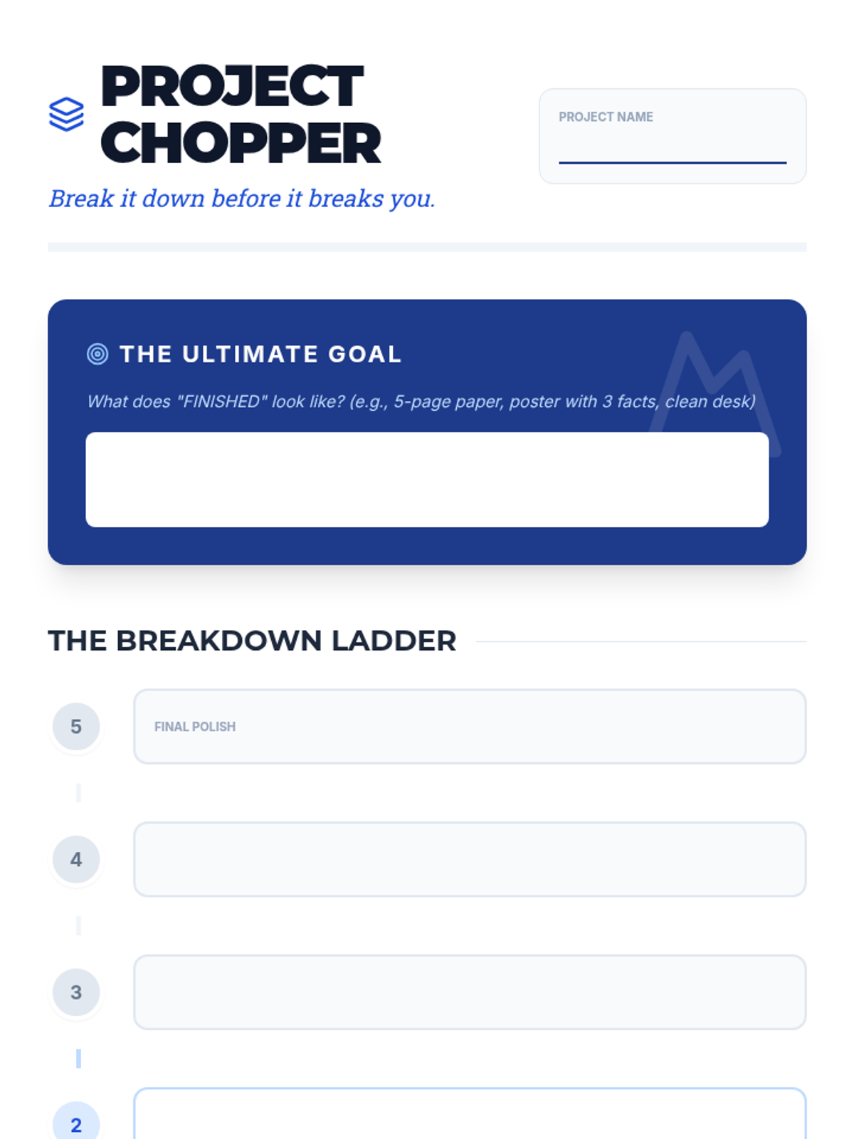 Students practice the 'chunking' method to turn overwhelming projects into manageable, bite-sized steps.