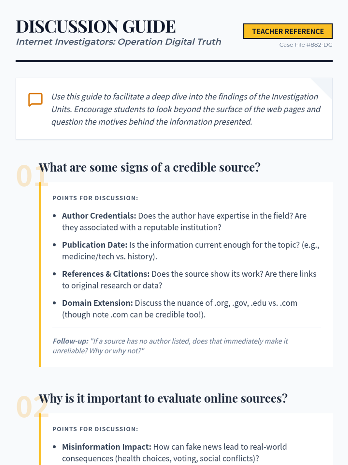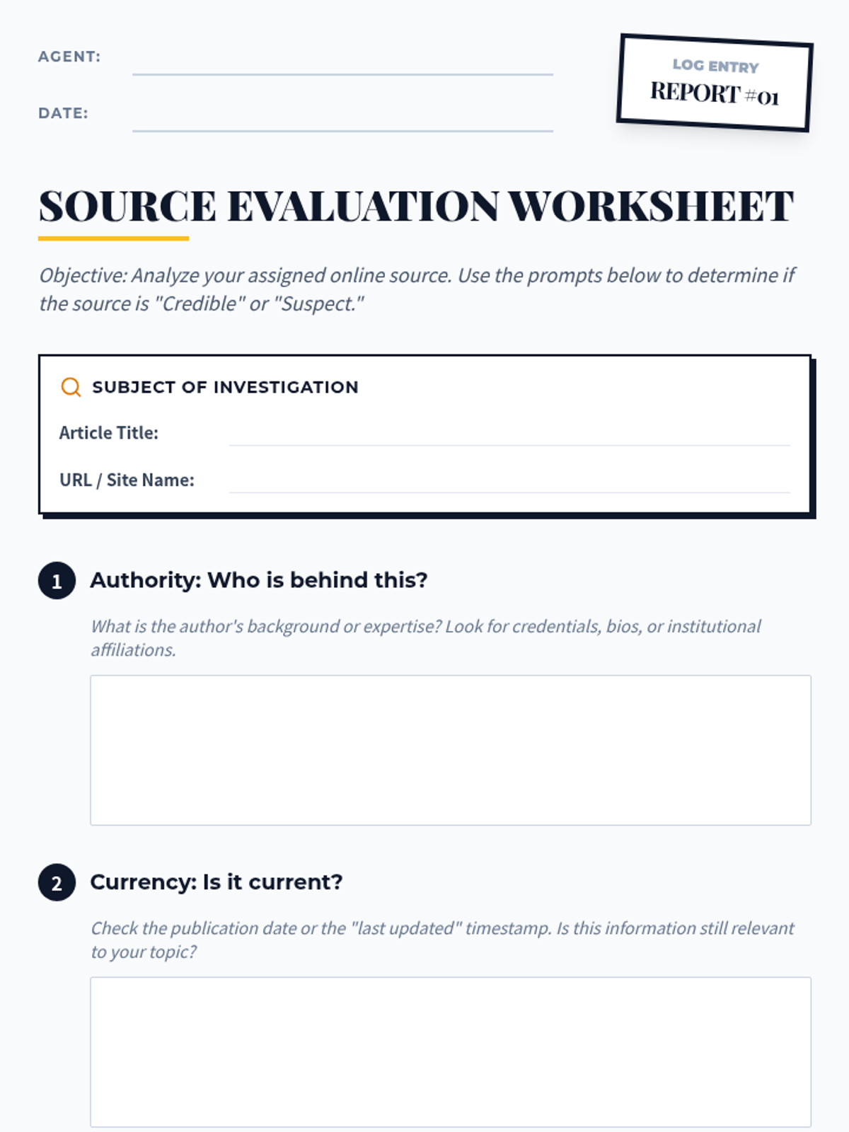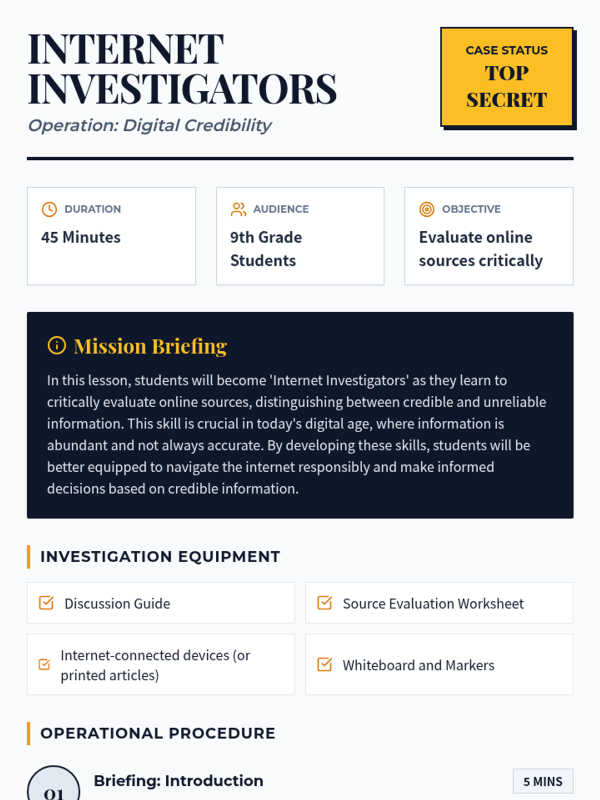 Students become 'Internet Investigators' as they learn to critically evaluate online sources, distinguishing between credible and unreliable information through hands-on evaluation of 'suspect' articles.