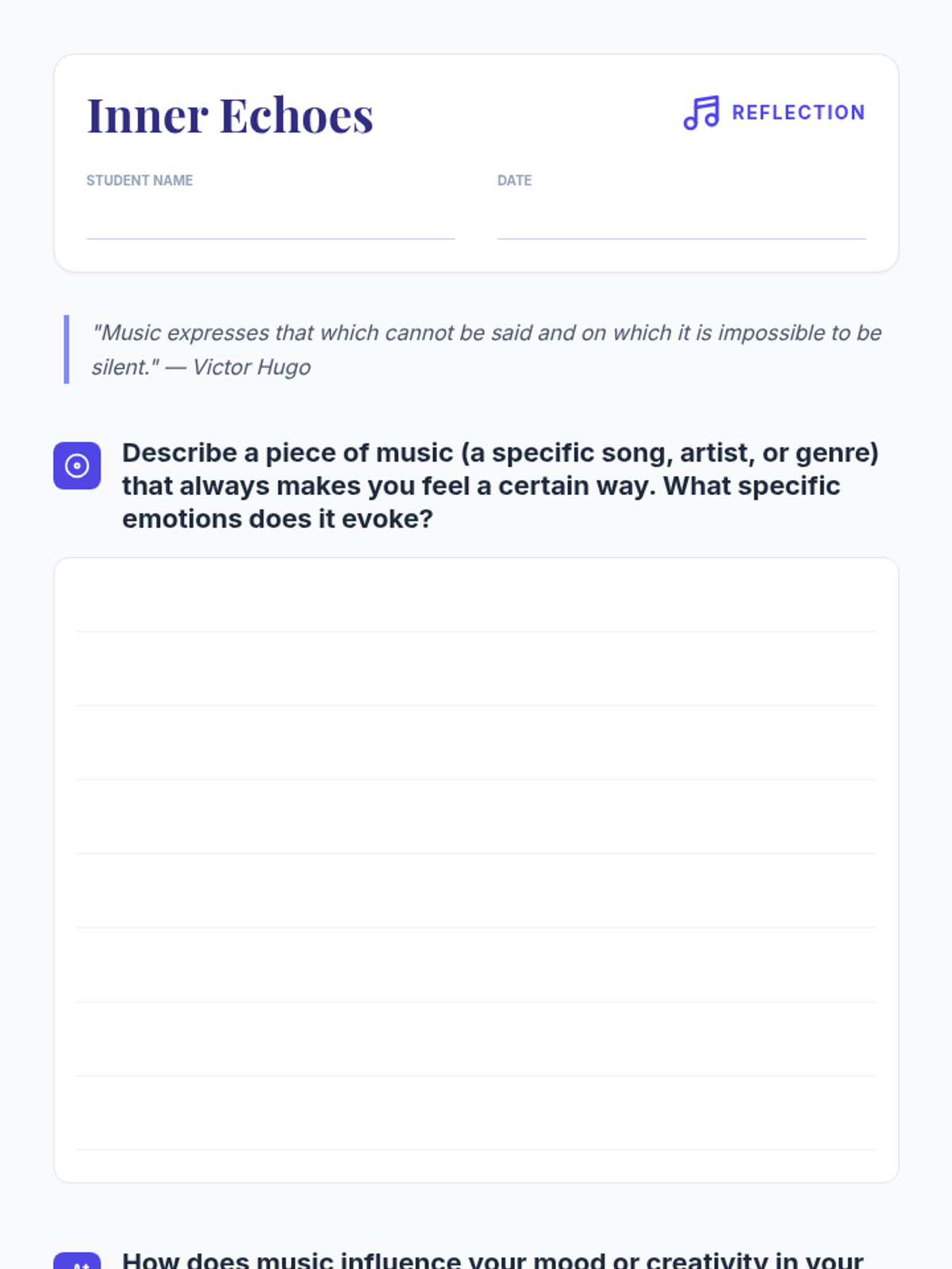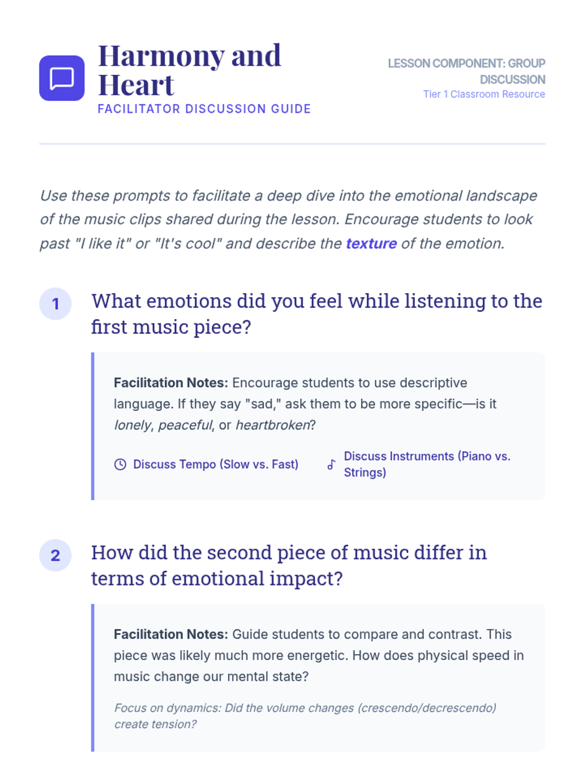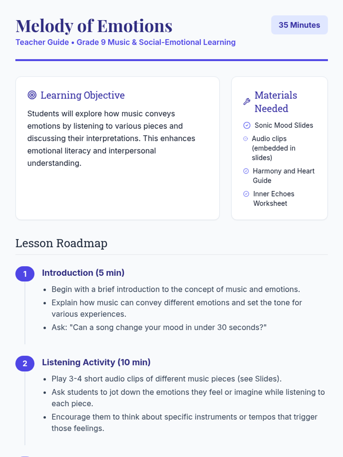 A lesson where students explore the emotional power of music, analyzing how tempo, dynamics, and instrumentation influence mood and personal interpretation.