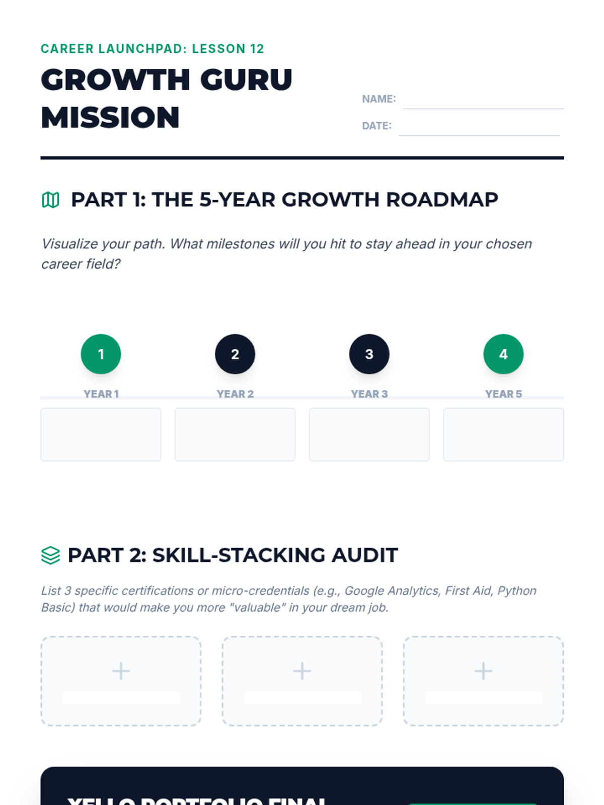This lesson explores how everyday school habits and academic skills directly translate into professional success, focusing on soft skills, organization, and critical thinking.