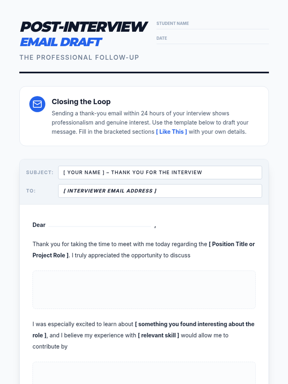 The capstone session where students consolidate their learning, create a vision board, and write a letter to their future professional self.