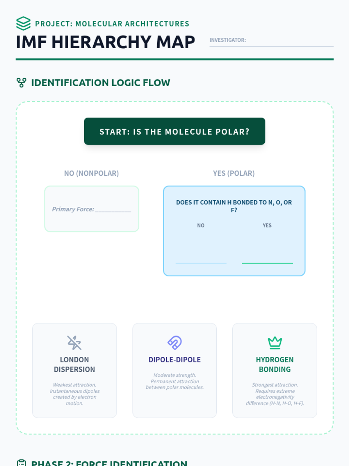 An introduction to London Dispersion Forces, Dipole-Dipole interactions, and Hydrogen Bonding, linking them to molecular polarity.