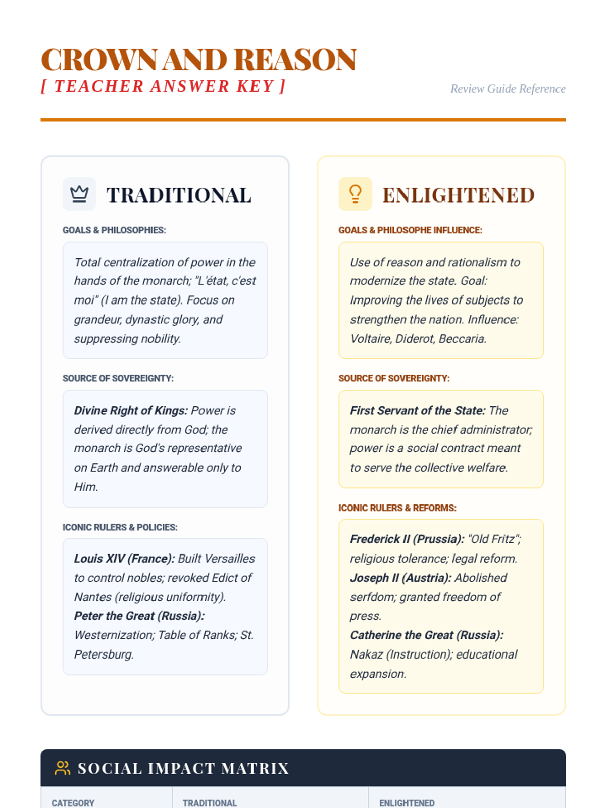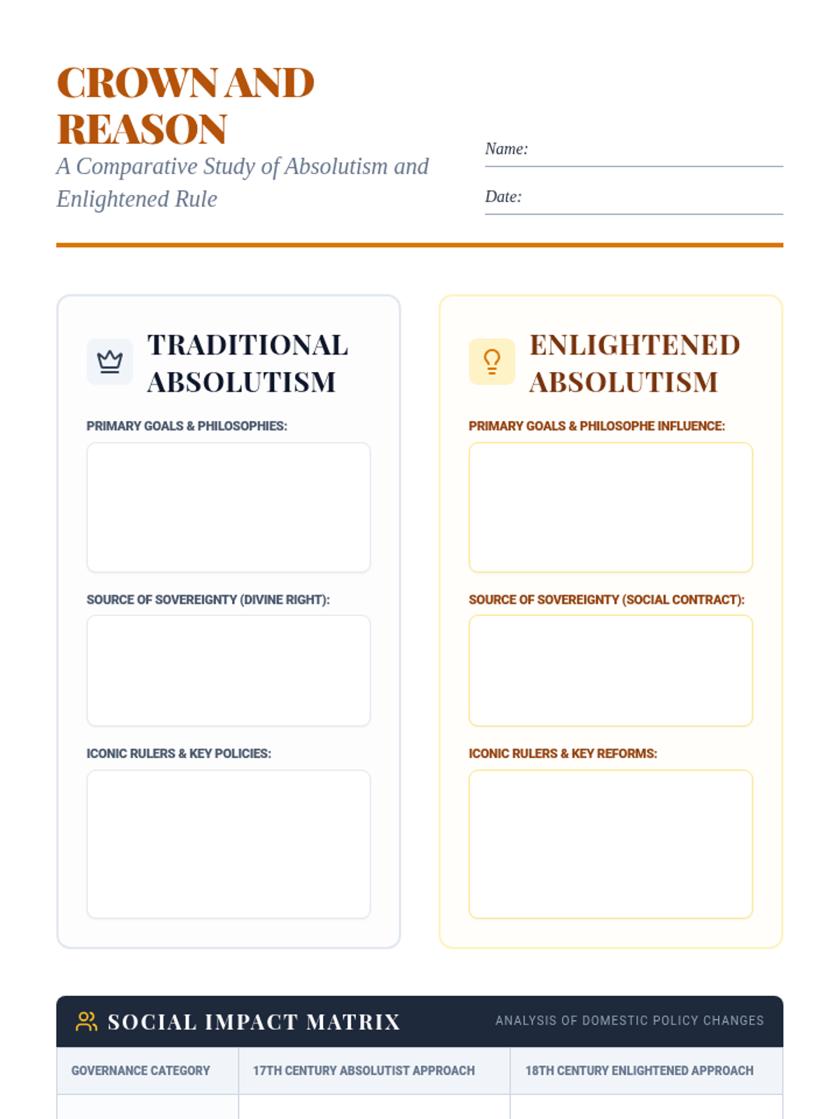 This lesson explores the rise of absolute monarchies and the subsequent emergence of enlightened despots who attempted to blend autocratic power with Enlightenment ideals. Students will analyze the reigns of key figures such as Peter the Great, Frederick the Great, and Catherine the Great.