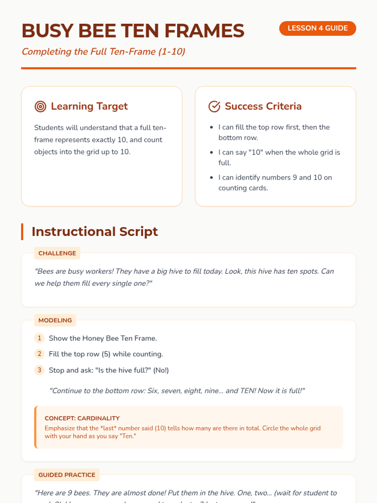 A focused ten-minute daily math intervention designed to help first-grade students master decomposing numbers up to 10 using Part-Part-Whole models and Ten Frames.