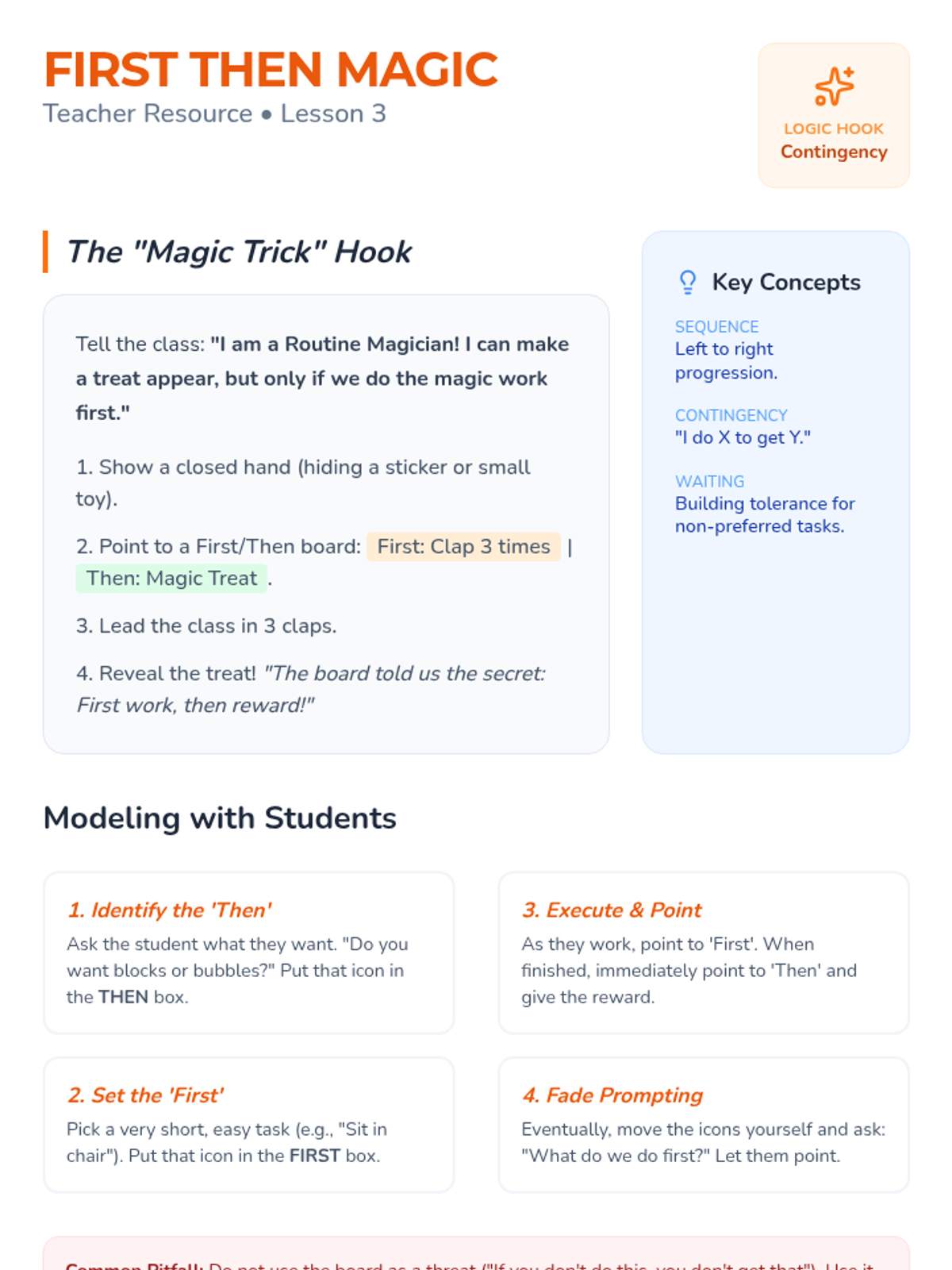 Teachers model the 'First/Then' logic using preferred activities, helping students understand the sequence of completing a task to access a reward.