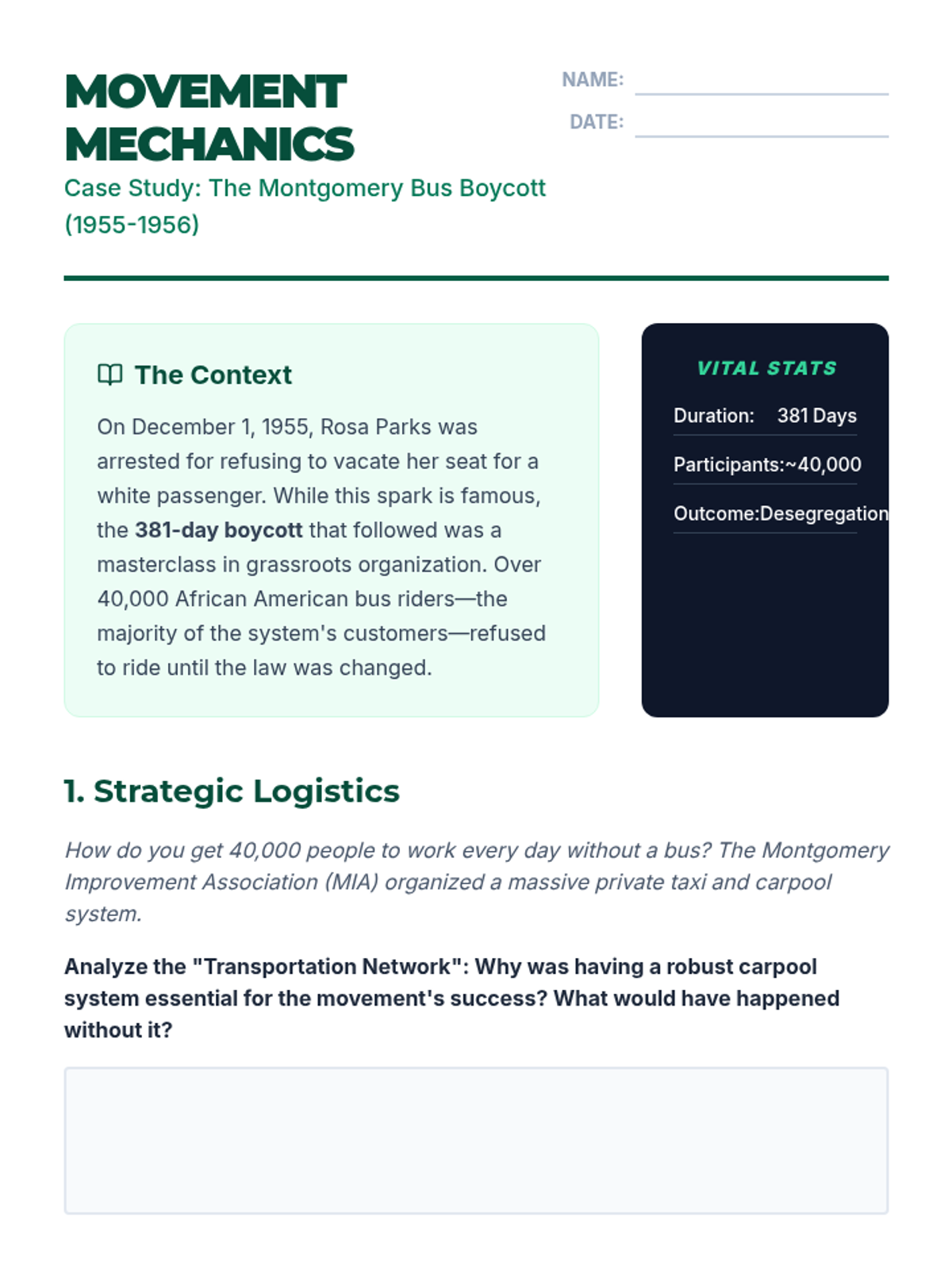 This lesson focuses on bottom-up change. Students conduct a case study on a successful grassroots movement, analyzing strategies used to build momentum and pressure decision-makers.