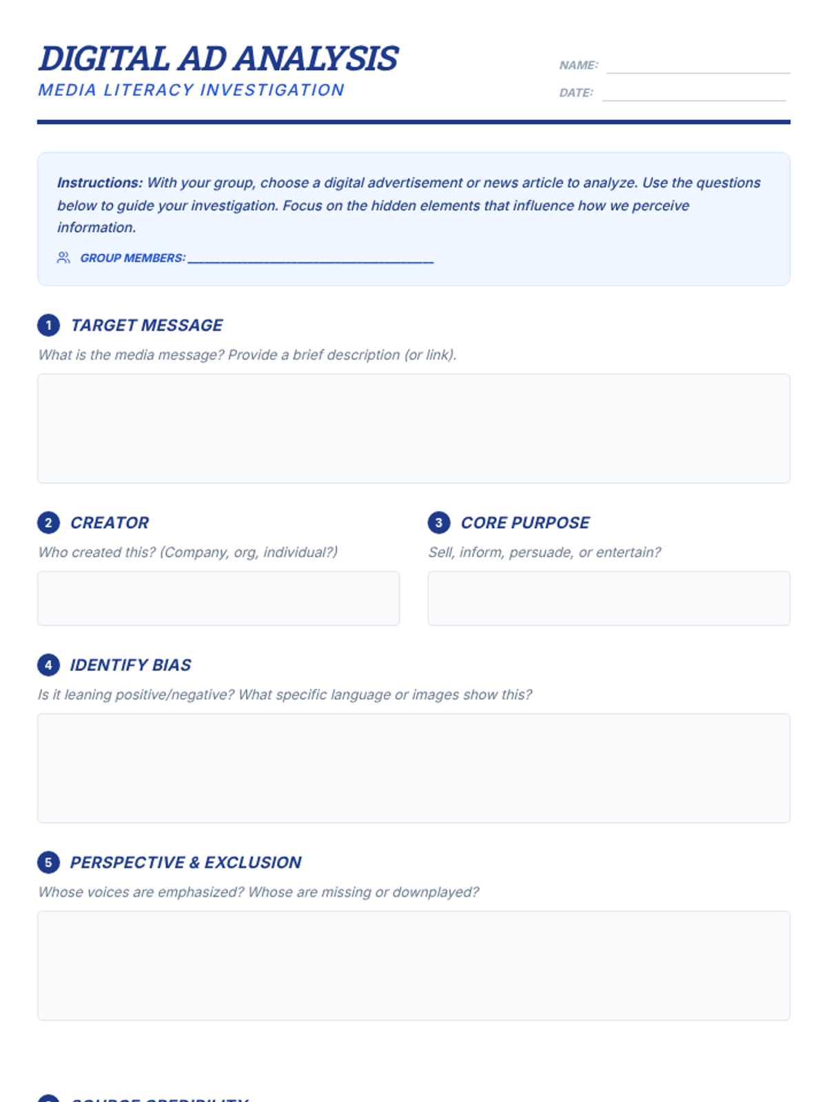 A 45-minute media literacy lesson for 11th Grade English focusing on identifying bias, perspective, and subtext in digital media and advertisements.