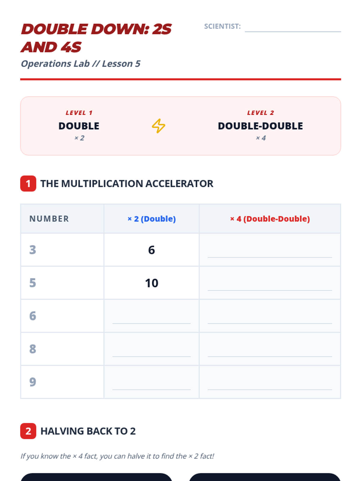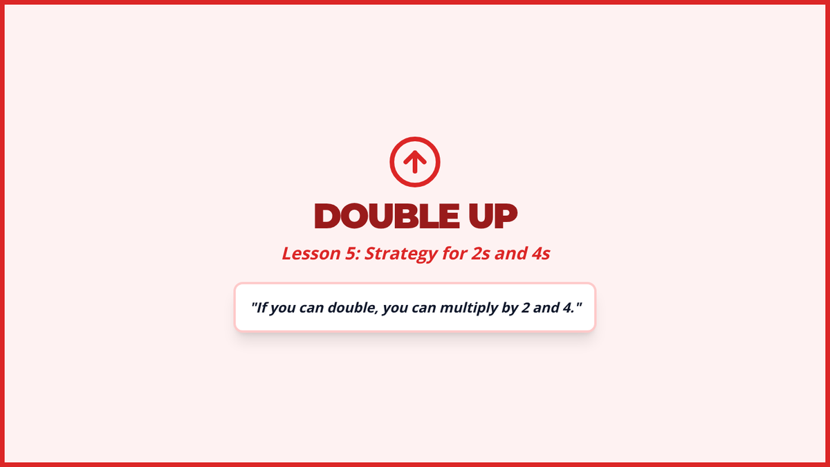 Building fluency with 2s and 4s by using the 'double' and 'double-double' strategy.