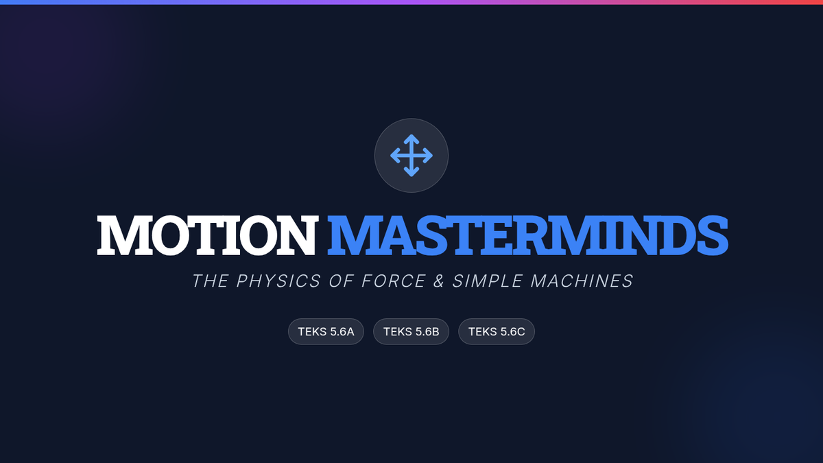 A comprehensive Grade 5 Science lesson focusing on the physics of motion, force, and energy. Students investigate balanced and unbalanced forces, friction, gravity, and simple machines through hands-on inquiry and real-world applications.