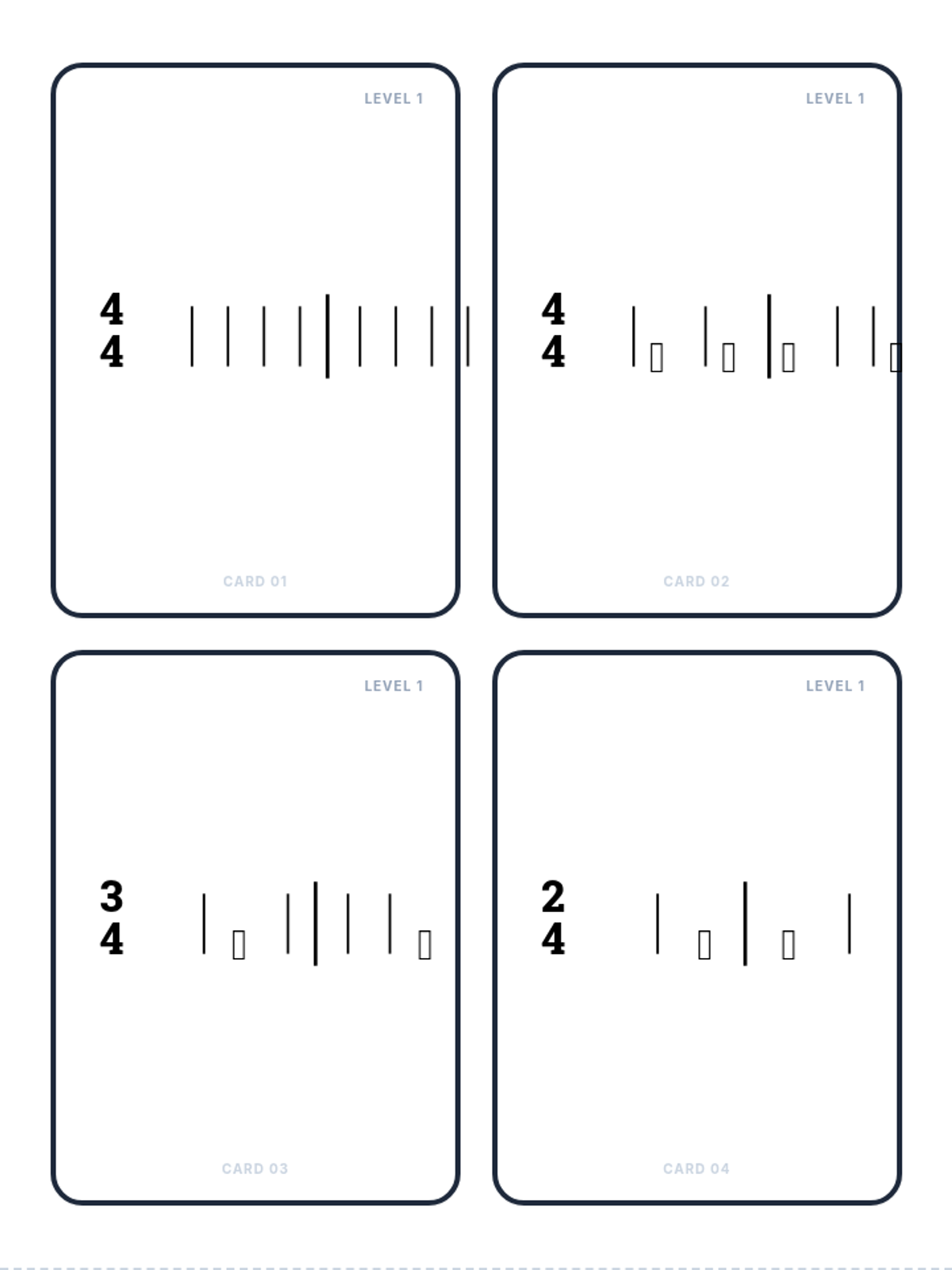 Exploring the difference between 4/4, 3/4, and 2/4 time signatures. Students will practice feeling the strong beats and identifying how measures are divided in different meters.