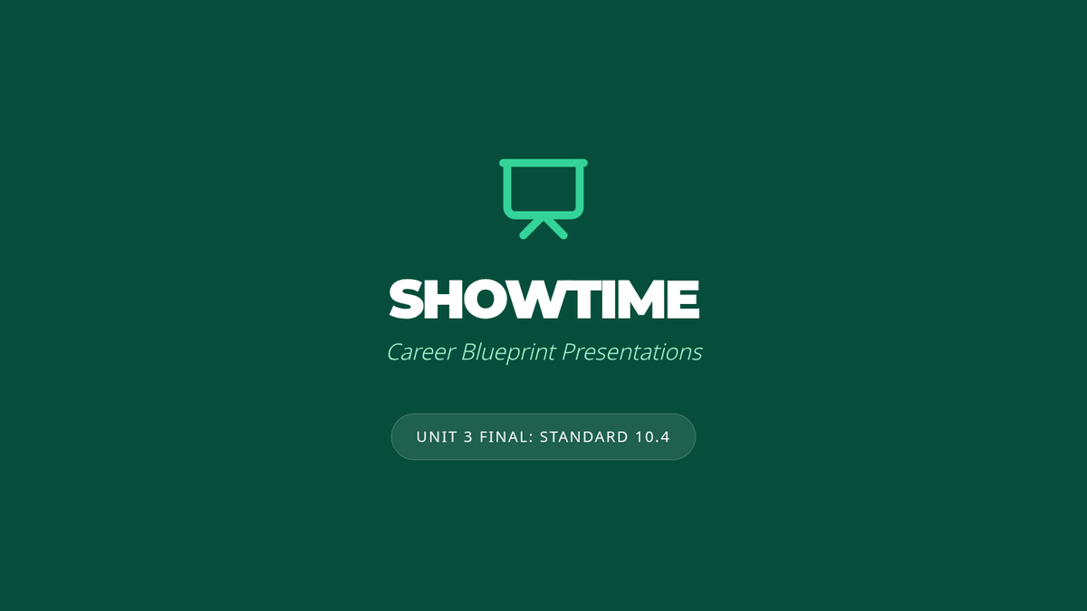 The final day of the unit focuses on students presenting their career research and budget projections to the class, demonstrating their oral communication and technological skills.