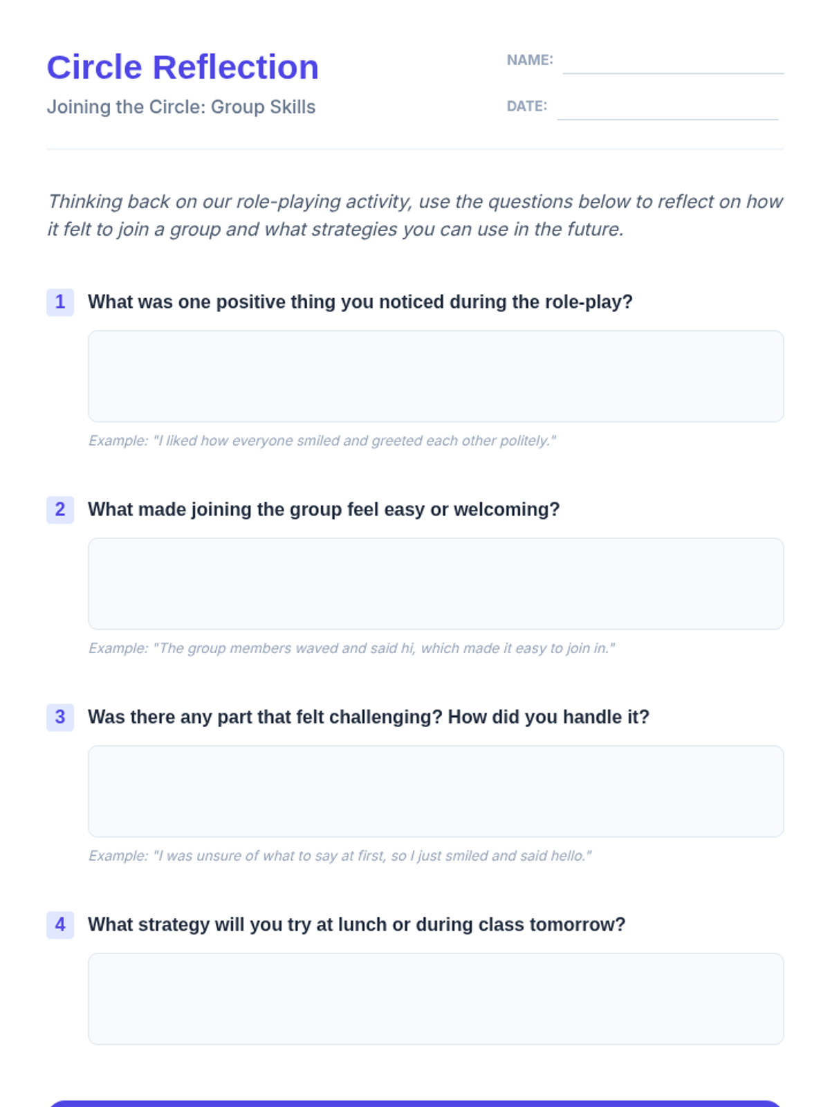 A lesson designed to empower students to understand their IEP goals and practice self-advocacy through scenario-based roleplay. Students will learn the 'Blueprinting' method for communicating their needs effectively to teachers and staff.