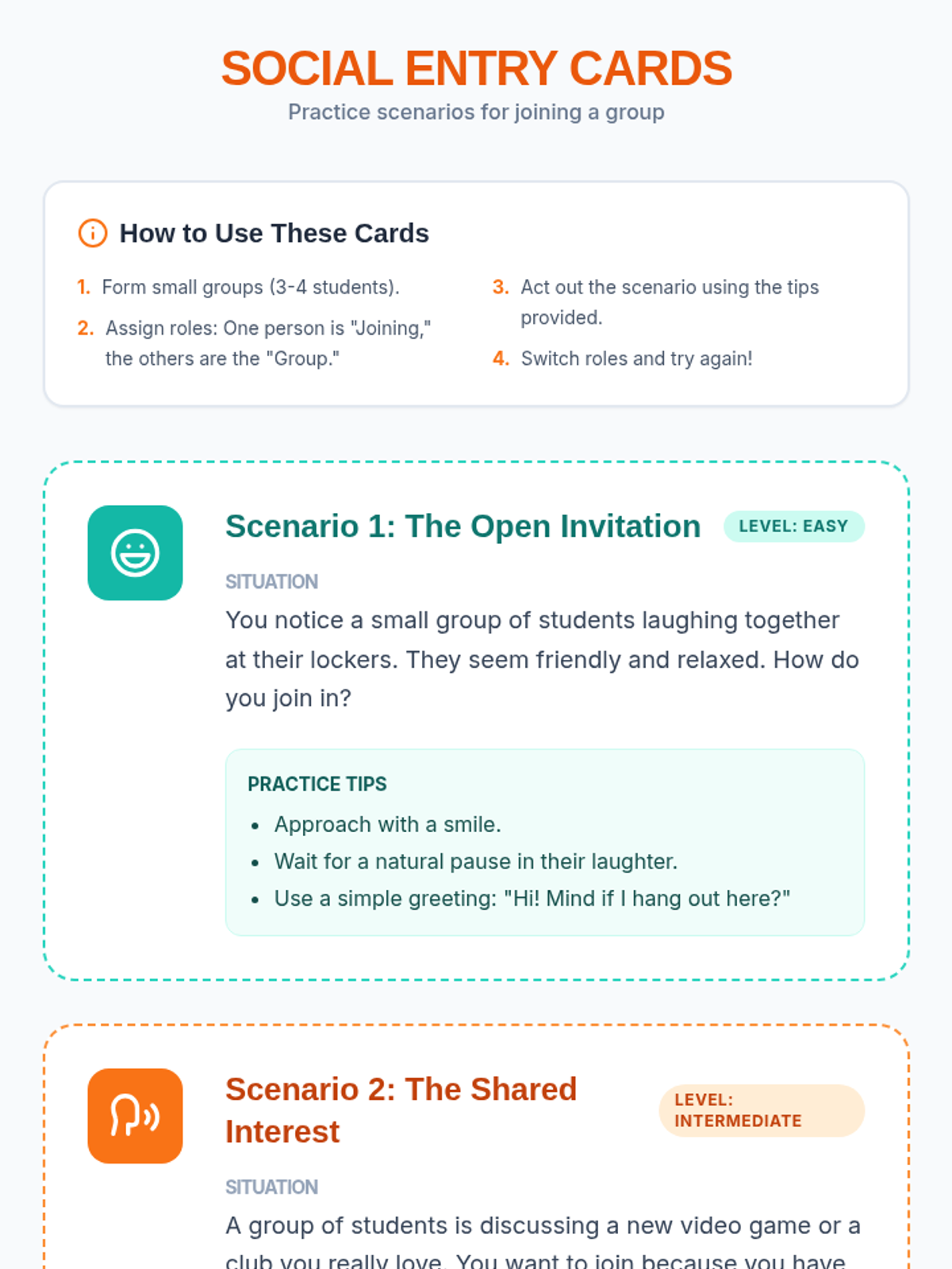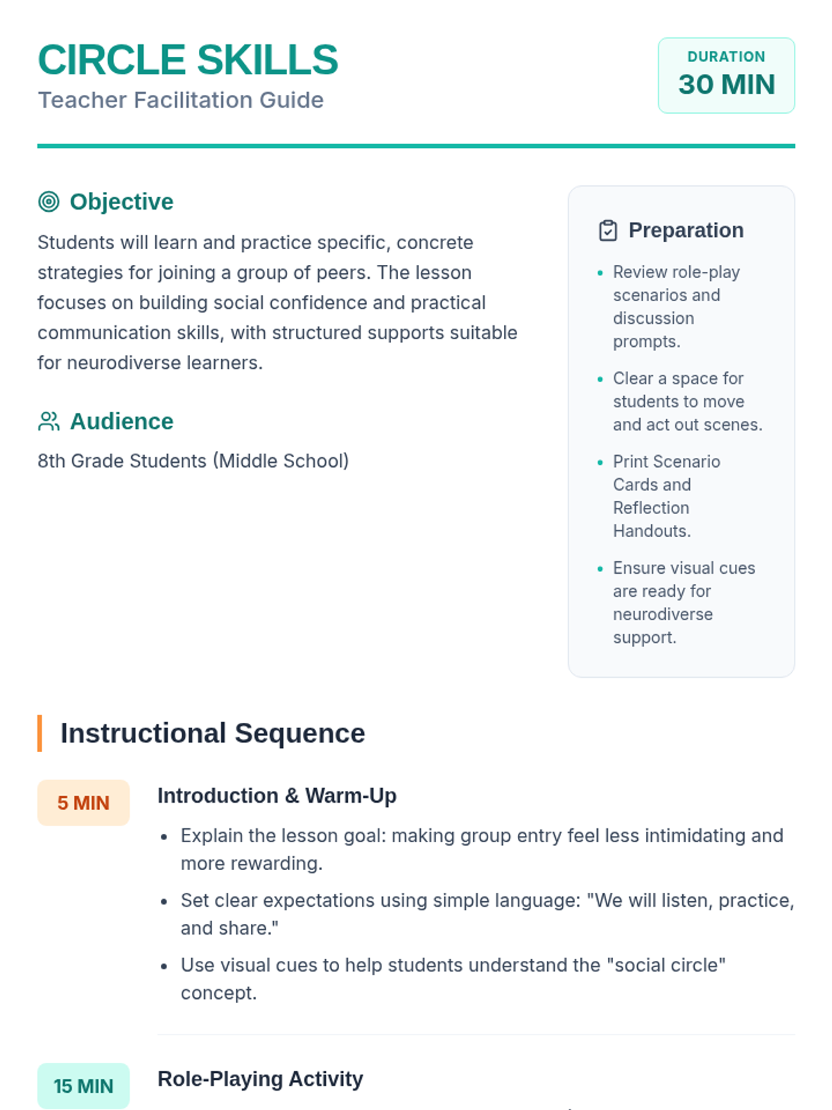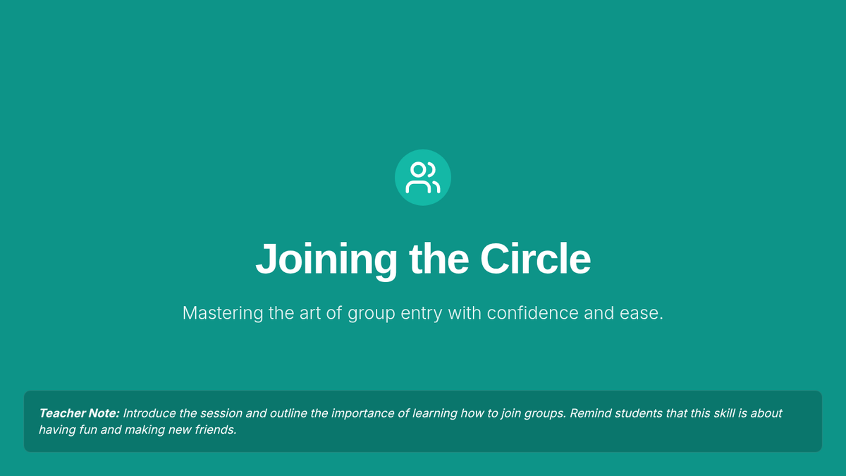 A 30-minute social skills lesson for 8th-grade students, including those with autism, focused on the practical steps and confidence needed to join a group of peers effectively.