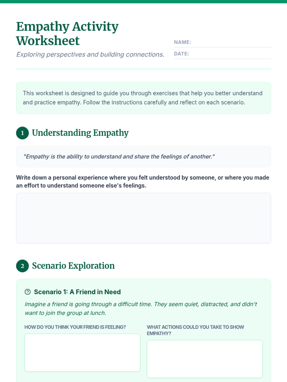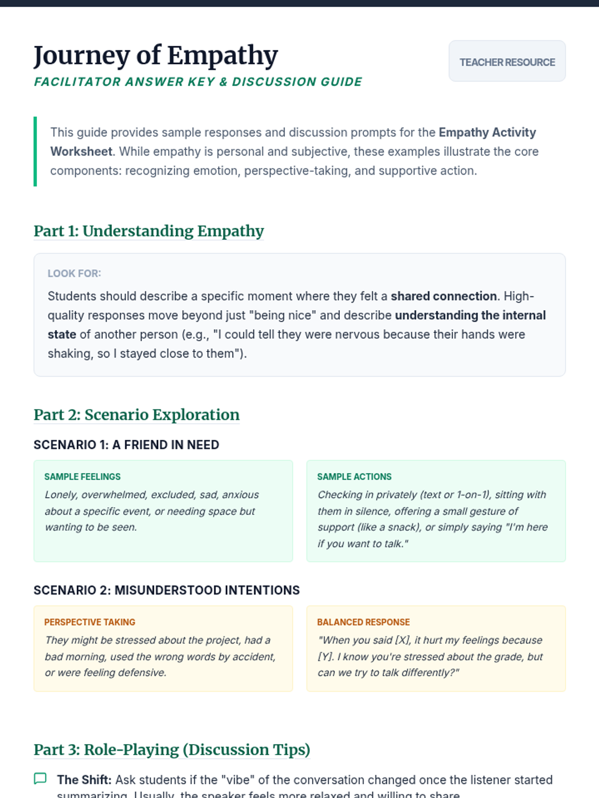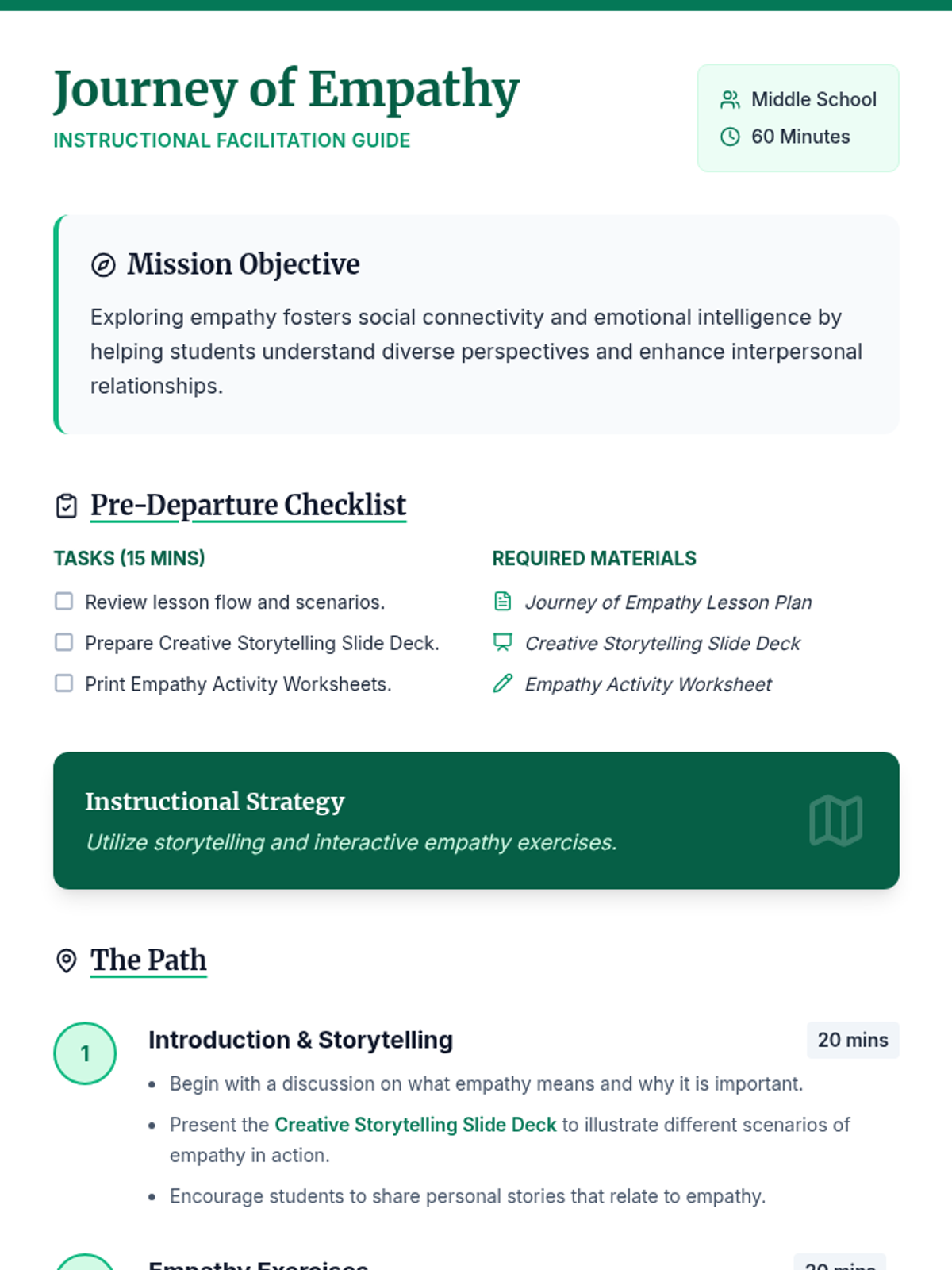 A lesson guiding middle school students through the concept of empathy using creative storytelling and role-playing exercises to enhance social connectivity and emotional intelligence.