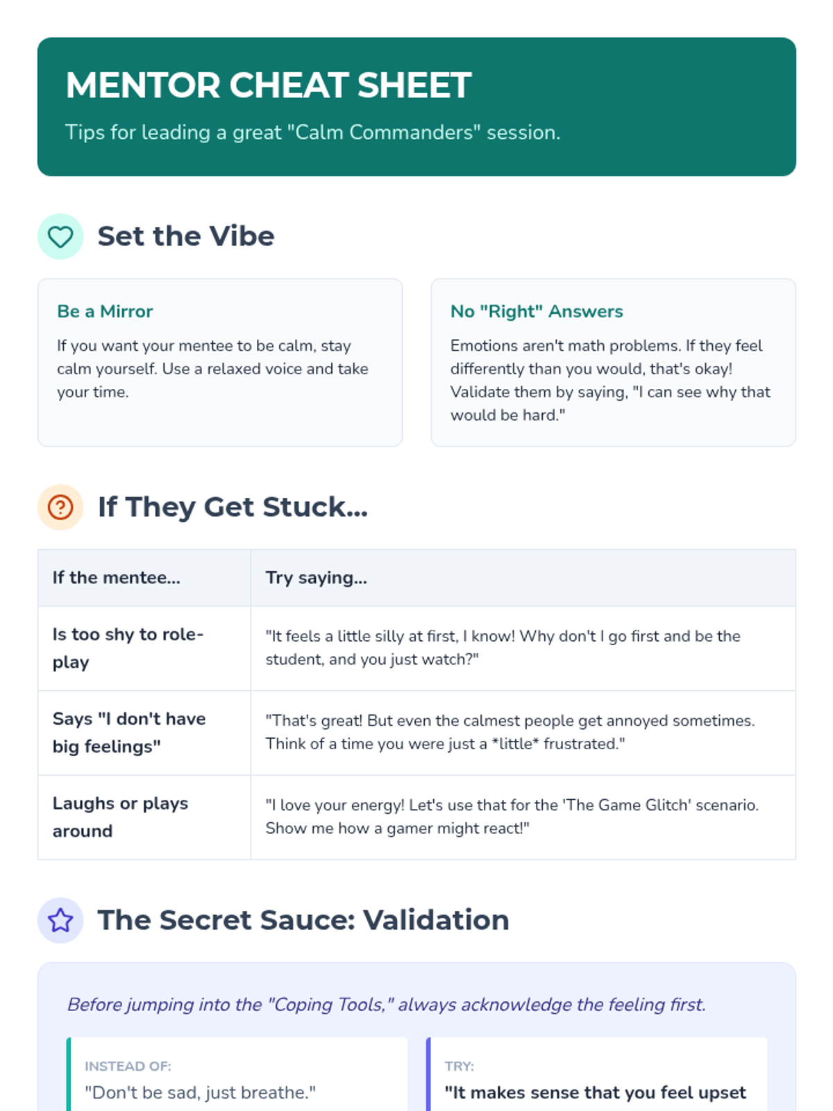 A peer-mentoring activity focused on identifying strong emotions and practicing healthy coping strategies through discussion and role-play.