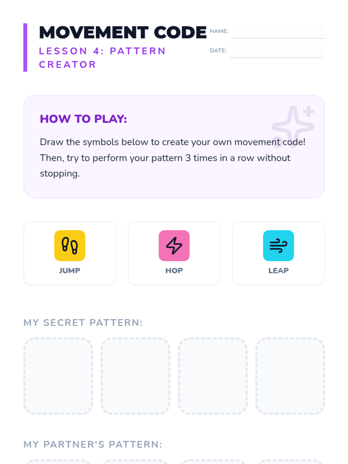 Students combine jumping, hopping, and leaping into coordinated patterns and sequences.